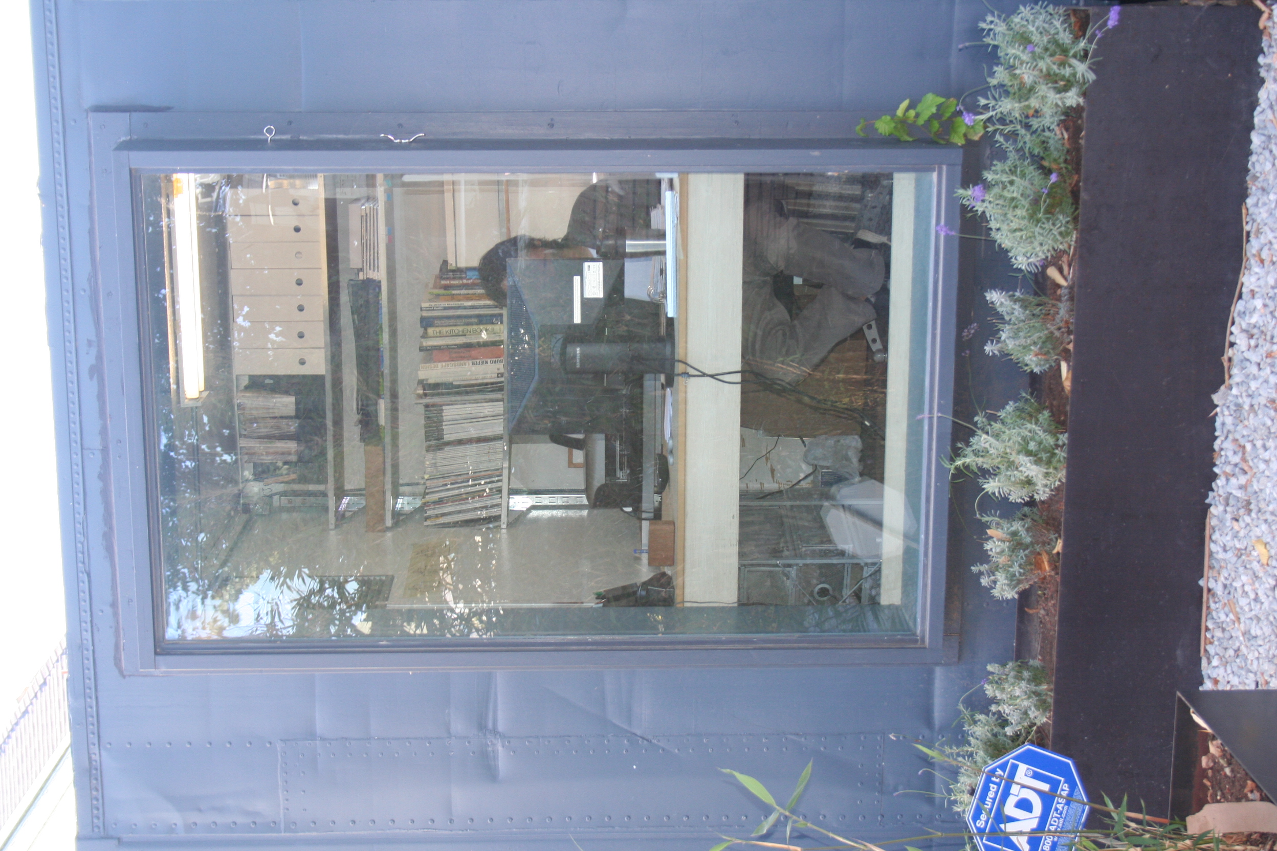 Plopped like a giant blue Lego on a street lined with craftsman bungalows, Stephen Shoup’s house is hard to miss in this Temescal neighborhood. The square building has no windows in the front, and even the doors are painted a dark blue.