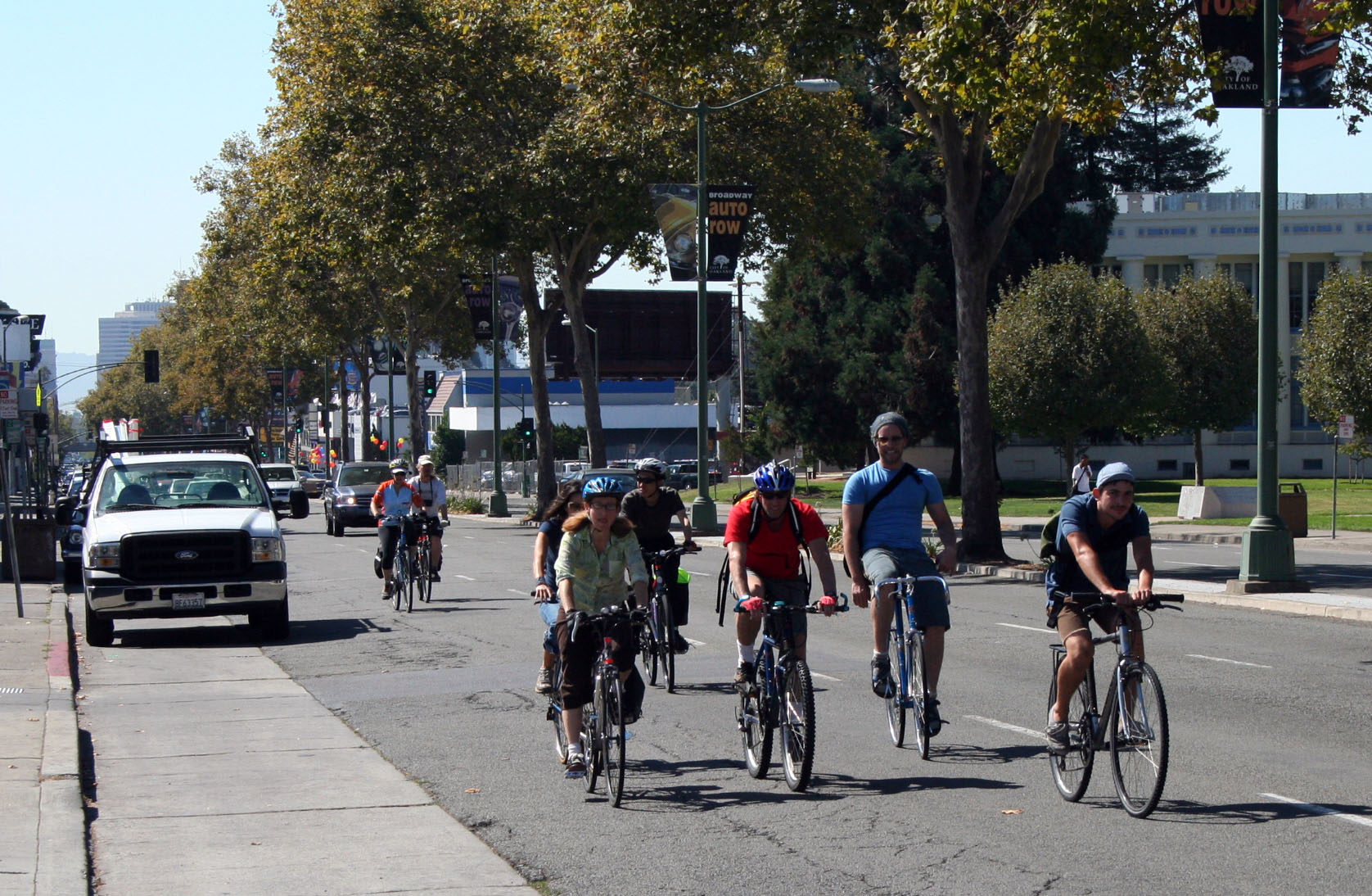On Saturday, the pedestrian and bicycling advocacy organization organized a group bike ride to educate people on how the city is working to improve bicycle access. The group also was trying to rally support behind its efforts to make cycling easier throughout town, particular along Broadway in North Oakland.