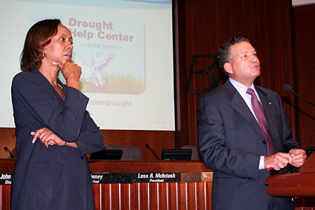 “We have received hate mail from east of the hills; we have received hate mail from west of the hills,” Lesa McIntosh, president of the East Bay Municipal Utility District’s board of directors, said at a press conference today. “We as a board have struggled with implementing the best plan. No one is 100 percent happy. [But] if this drought continues and my Indian rain dance doesn’t work, rationing will continue.”