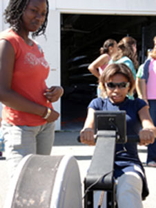 Alexandria Flourney, 17, a team member for three years, practices her rowing techniques on the ergometer. (Photo by Martin Ricard)