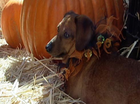 But the most popular attraction of all, Goldstein says, is Oopy, the patch’s 9-year old dachsund, who gets in the spirit by wearing a necklace festooned with orange and black ribbons, and eating raw pumpkin from a spoon. “Some people don’t care about the pumpkins,” he says. “They just come to see Oopy.”