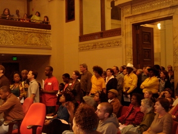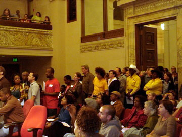 Oct. 22 — After five hours of heated discussion–including pleas, arguments, and even musical performances by more than 200 Oaklanders begging city council members to reconsider layoffs and spending cuts–last night’s budget discussion ended somewhat anti-climactically.“Seven ayes,” Council President Ignacio De La Fuente mumbled into his microphone at approximately 11:20 p.m., bringing the main business of Tuesday’s council meeting to a close. “We have a budget.”