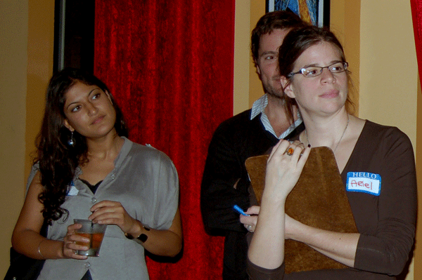 Quite a few attendees came to hear Echa Schneider, the woman behind the popular community blog abetteroakland.com, who spoke briefly as a featured guest of the event on the topic for the evening “the influence that traditional and new media have on local and national politics.” Schneider underscored the importance of local blogs—useful alternative news sources, she said, at a time when staff cuts are causing major area papers to abandon City Hall meetings.