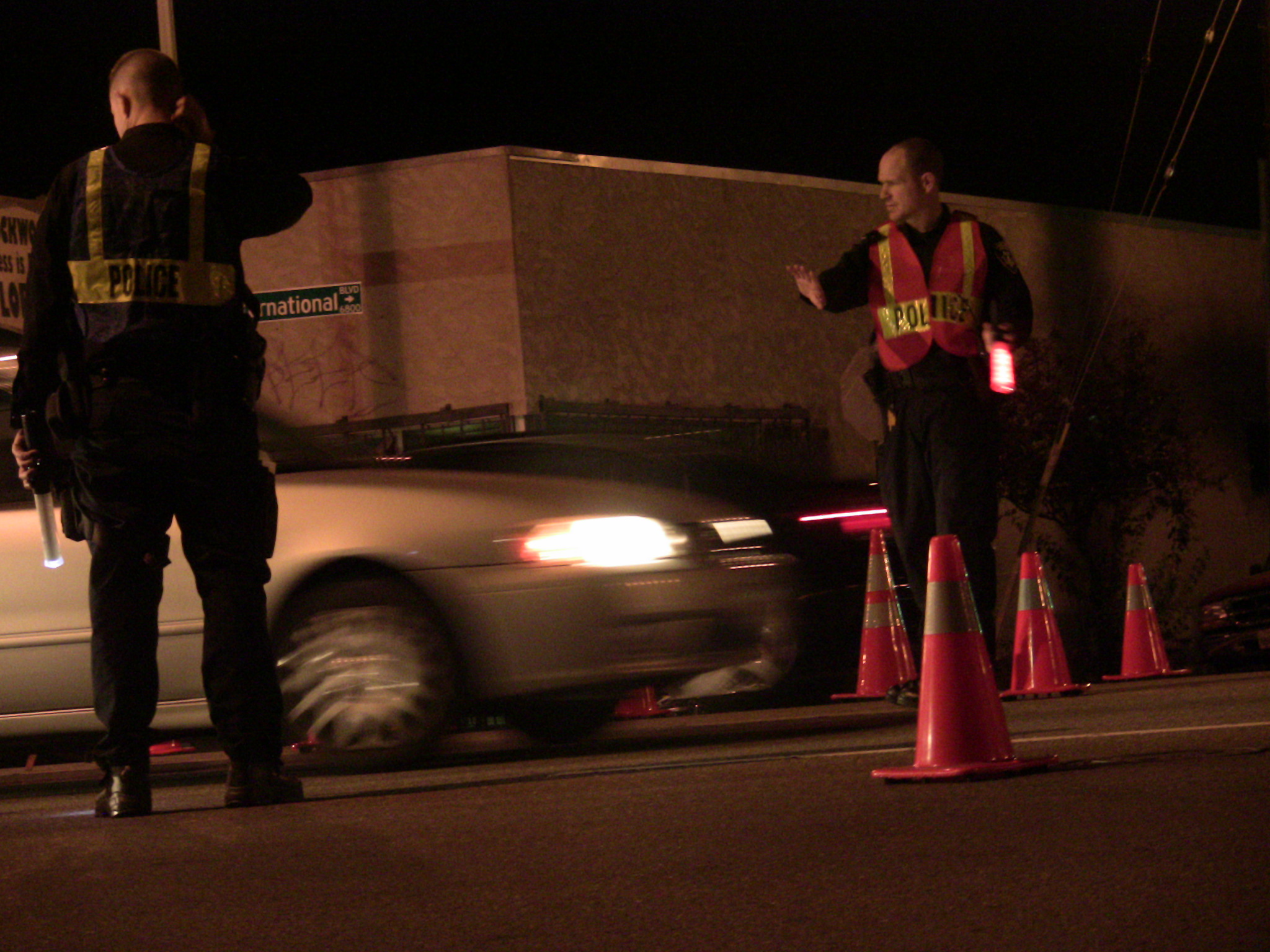 When a drive passes through a checkpoint or is being pulled over, police will be looking for “objective symptoms” of intoxication, like any smell of alcohol, bloodshot or watery eyes, or difficulty retrieving a driver’s license. At a checkpoint, if officers suspect something they’ll have the driver pull off to the side, where another officer continues investigating. They’ll usually start by shining a flashlight in the driver’s eye, which, in addition to annoying the person, will allow the officer to gauge the eye’s response: if the pupil doesn’t contract much when the light hits it, that is a sign of intoxication.