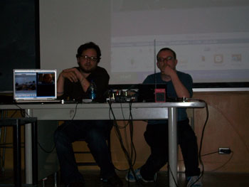 Calling themselves a “traveling band of guerilla broadcasters,” Brumit, along with fellow co-founders Lee Montgomery and Michael Trigilio, shared their most memorable experiences last Monday night–from confrontations with radio industry bigwigs to community building in underserved areas–as part of UC Berkeley’s Art, Technology, and Culture Colloquium, a series sponsored by the university’s Center for New Media.