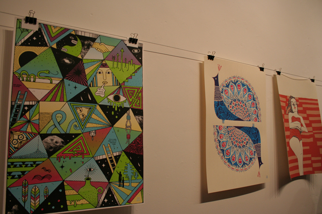 Next door there was an impromptu showing at Bloom Printing, which is not a gallery, but a screen printing business where artists send digital files of their art to be brought to life in an analog format.
