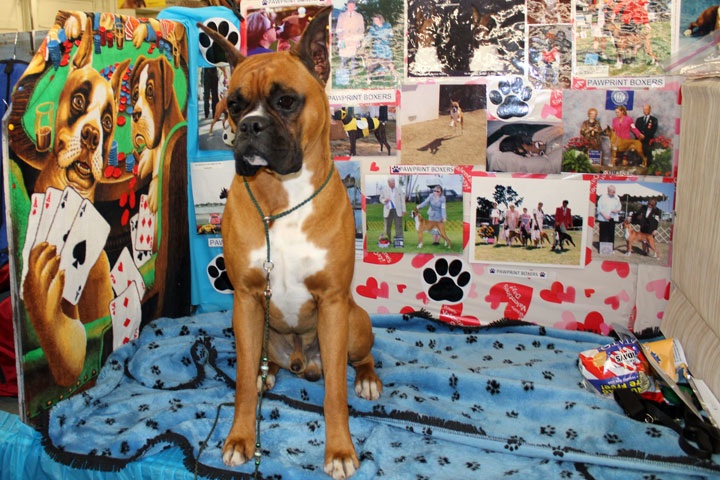 Each booth serves as a large advertisement for its assigned kennel. Pamphlets, business cards, and candy were strewn across a small table Ghimenti had set up. The booth was also decorated with towels with Boxers splashed across them, framed photographs of winning moments, and a giant display board covered in photos of dogs from her kennel, PawPrint Boxers, which she registered with the American Kennel Club in March, 2008. Last year the club honored Ghimenti as a Breeder of Merit.