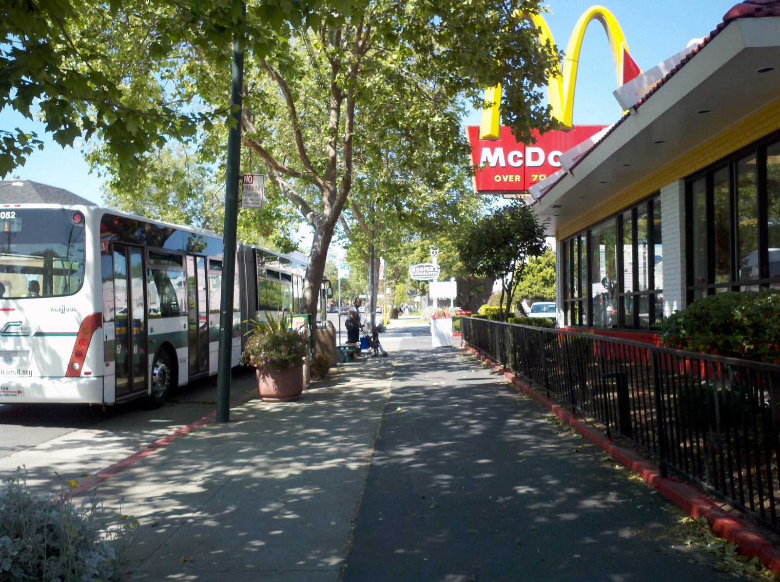 - The McDonald’s on 45th Street and Telegraph Avenue could get remodeled so that the drive thru lane parallels this sidewalk, where the 1 bus stops.