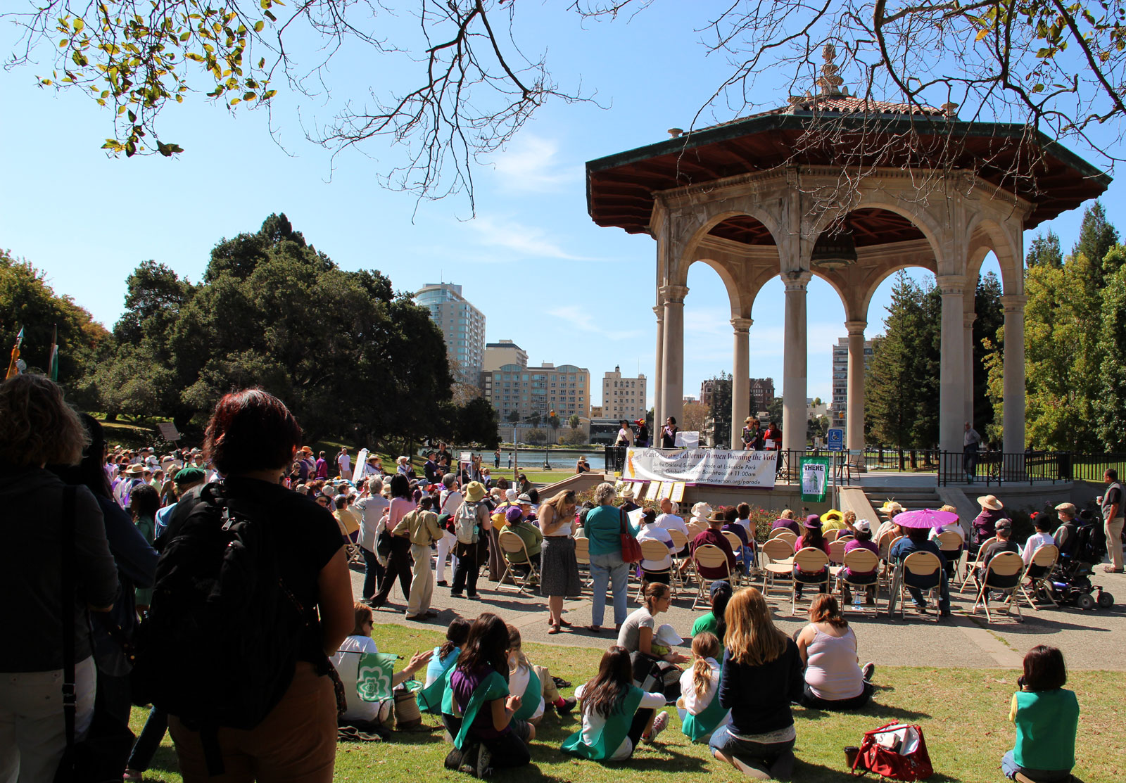 Quan was joined by city councilmembers Libby Schaff (District 4) and Jane Brunner (District 1) on the bandstand, along with County Supervisor Nate Miley (District 4) and Congresswoman Barbara Lee. Lee read from a congressional statement appreciating the work of League of Women Voters groups throughout the country, but also said that women have not achieved equality yet. “In Washington, DC, each and every day women’s rights are being attacked. There is a war against women taking place, so be vigilant my sisters! Understand that there is much work to do,” she urged the crowd.
