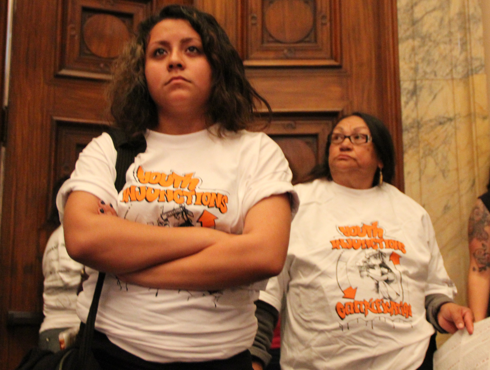 More than 400 speaker cards were filled out for the three public safety items, and cheers and boos from the crowd regularly punctuated speeches. Pablo Paredes, a 29 year-old resident of Oakland, began by theatrically mimicking the councilmembers and Batts, claiming to be each of them in turn as he listed what he felt were their primarily “selfish” concerns. “I’m Oscar Grant, and I’m here because you have too many tools in your toolbox!” he ended, to cheers from the crowd, invoking the name of the young man shot to death by a BART police officer in 2009. Paredes said that by passing these items, the city would be falling in step with states like Arizona and Alabama, which have recently adopted strict anti-immigration. “Over there at least they are honest about it,” he said. “Here we say we’re a sanctuary city.”