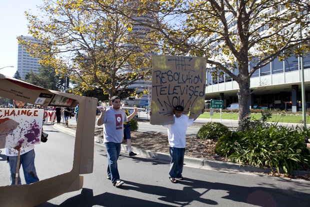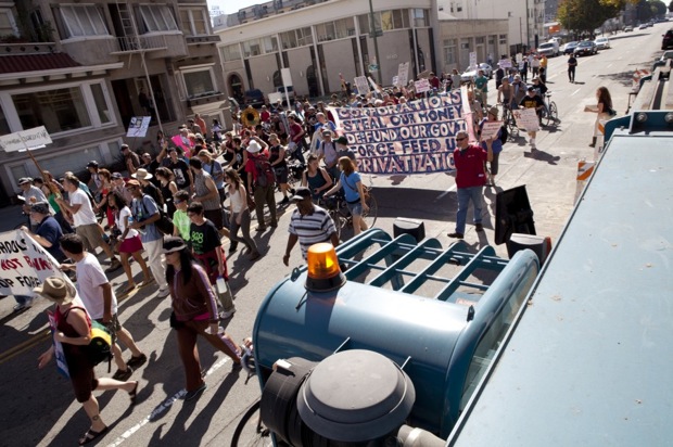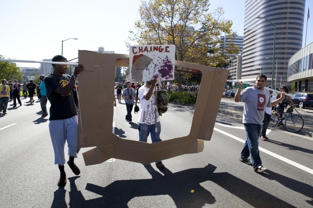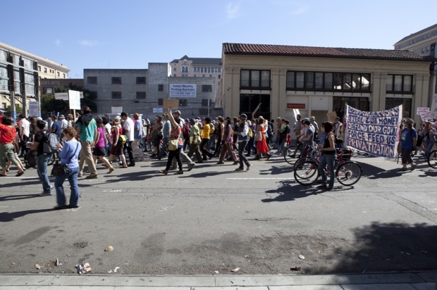 - Protesters marched from Frank Ogawa Plaza to Lake Merritt on Saturday, October 22nd, as a part of the ongoing Occupy Oakland protest. Photo by Mariel Waloff