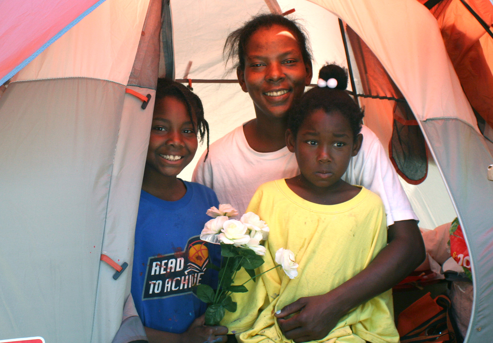 Torricka Wilson with her daughters Toristine and Toriawn in their tent, given to them by Occupy Oakland organizers.