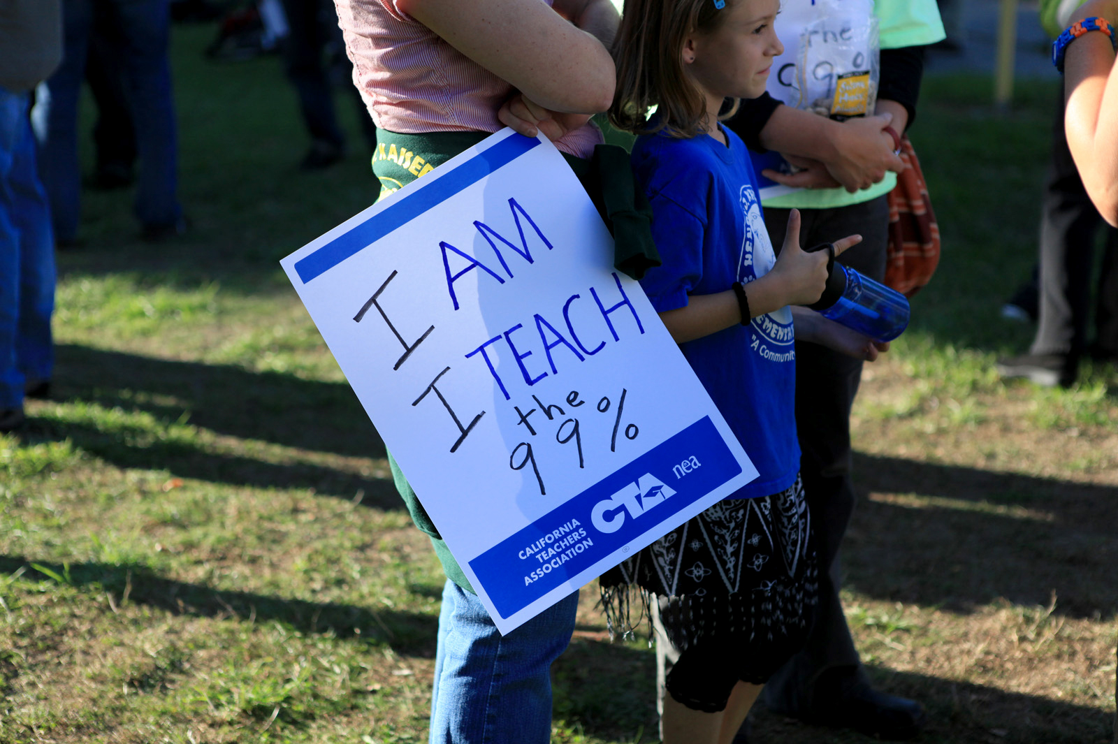 A crowd of about 100 parents, students, teachers and other community members marched from Mosswood Park to the board meeting.