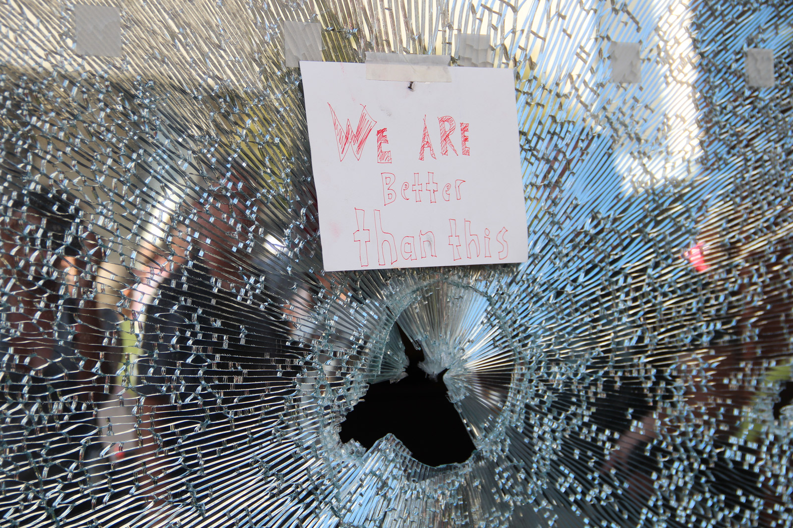 - A protester left this sign on the broken glass wall of Chase bank at Franklin and 19th street in Oakland after other protesters smashed the wall with wooden poles