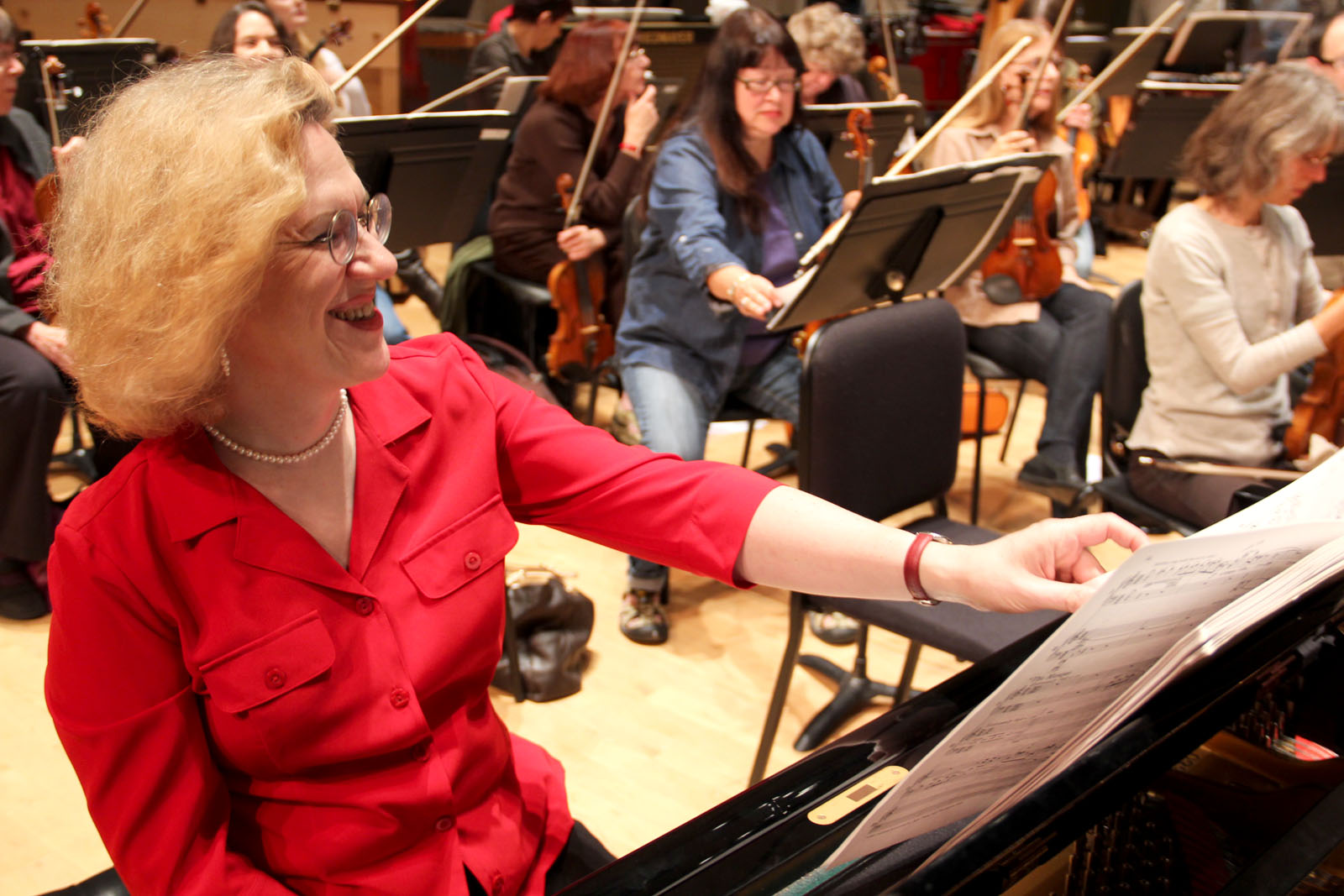 Sara Davis Buechner arrived at the rehearsal late. She had just flown in from the East Coast and was running on little sleep as she prepared to rehearse with the Oakland East Bay Symphony for their opening concert for the 2011-2012 season. “I usually wear sweatpants, but decided to wear something nice tonight,” said Buechner, removing her jacket and tousling her shoulder-length blonde hair to reveal a fitted red blouse as she walked towards the piano on stage at the San Francisco Conservatory of Music.