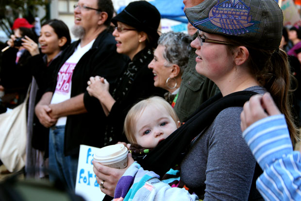 […] Rita Nakashima Brock outside of the interfaith tent at the Occupy Oakland encampment on Frank Ogawa Plaza on November 2, 2011. Photo by Amina Waheed. (Image source) […]