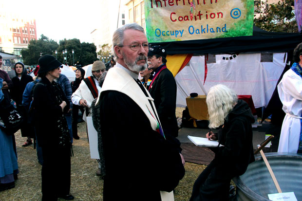 Every village needs a church—or perhaps a non-denominational interfaith tent—to fill the spiritual needs of its inhabitants, and according to a recently formed group of Bay Area clergy, the Occupy Oakland encampment at Frank Ogawa Plaza is no different.