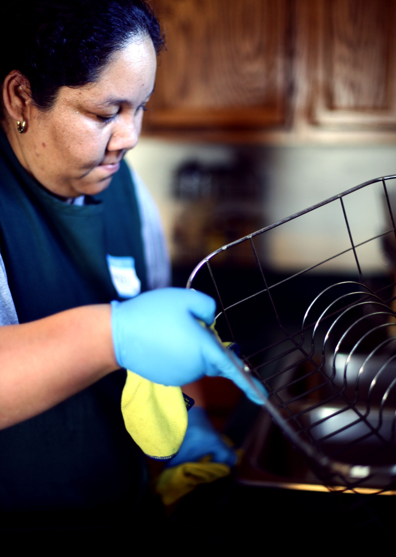 The envelope she collects has been stuffed with her work assignments for the day—mostly private homes in Oakland, occasionally a small office—and Google Map directions to each, printed out the day before by the office staff. By 7 am, Del Toro is back in the car with her cleaning partner, 26-year-old Alejandra Arceo, both of them wearing standard-issue green t-shirts beneath matching aprons emblazoned with the company logo. On the surface, the pair could be any number of immigrant Latina house cleaners setting out to tidy the homes of Oakland’s more affluent residents.