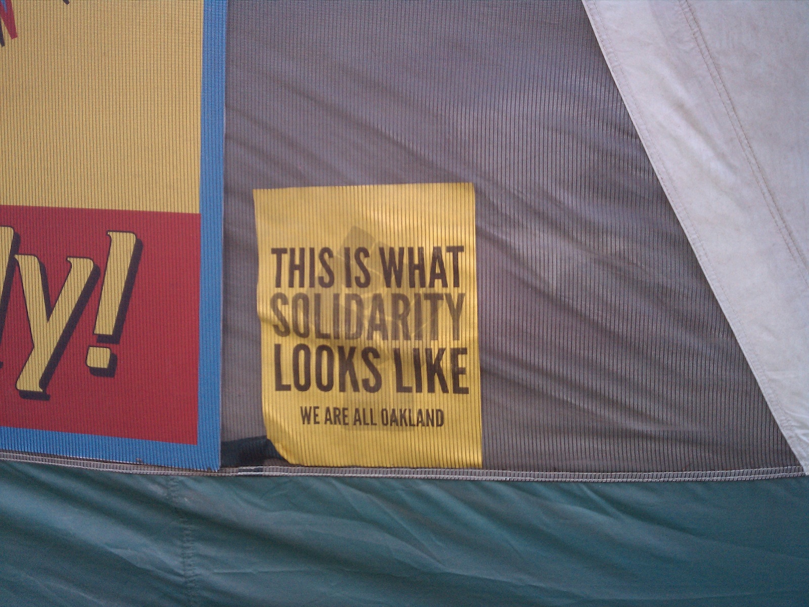 Gorney took this photo of a sign on a tent in Boston. “On brief work assignment in Boston this weekend, strolling through downtown, there was Occupy!” Gorney wrote in an e-mail. “Walked in, began snapping. When I said I was from Oakland, they all looked by turns grave, excited, or impressed.”