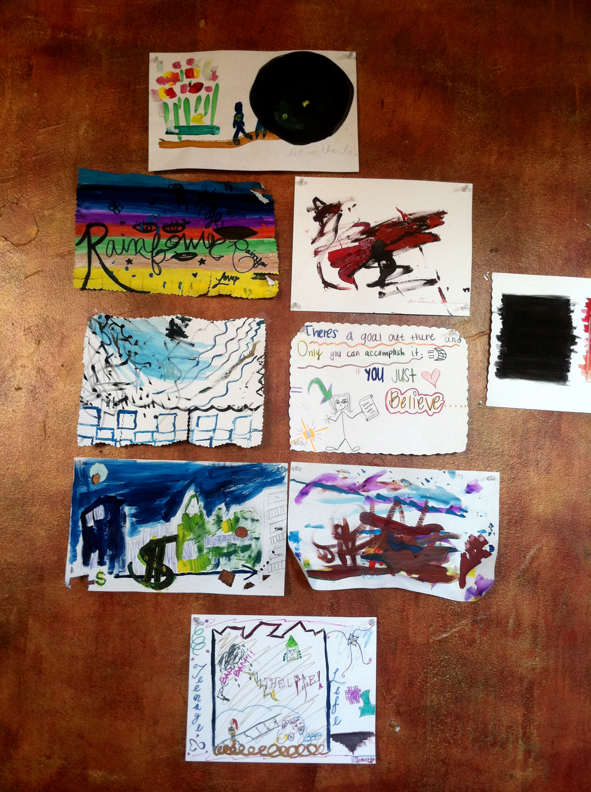 The girls in CERI’s support group for young women made paintings in response to a documentary about the commercial sexual exploitation of children.