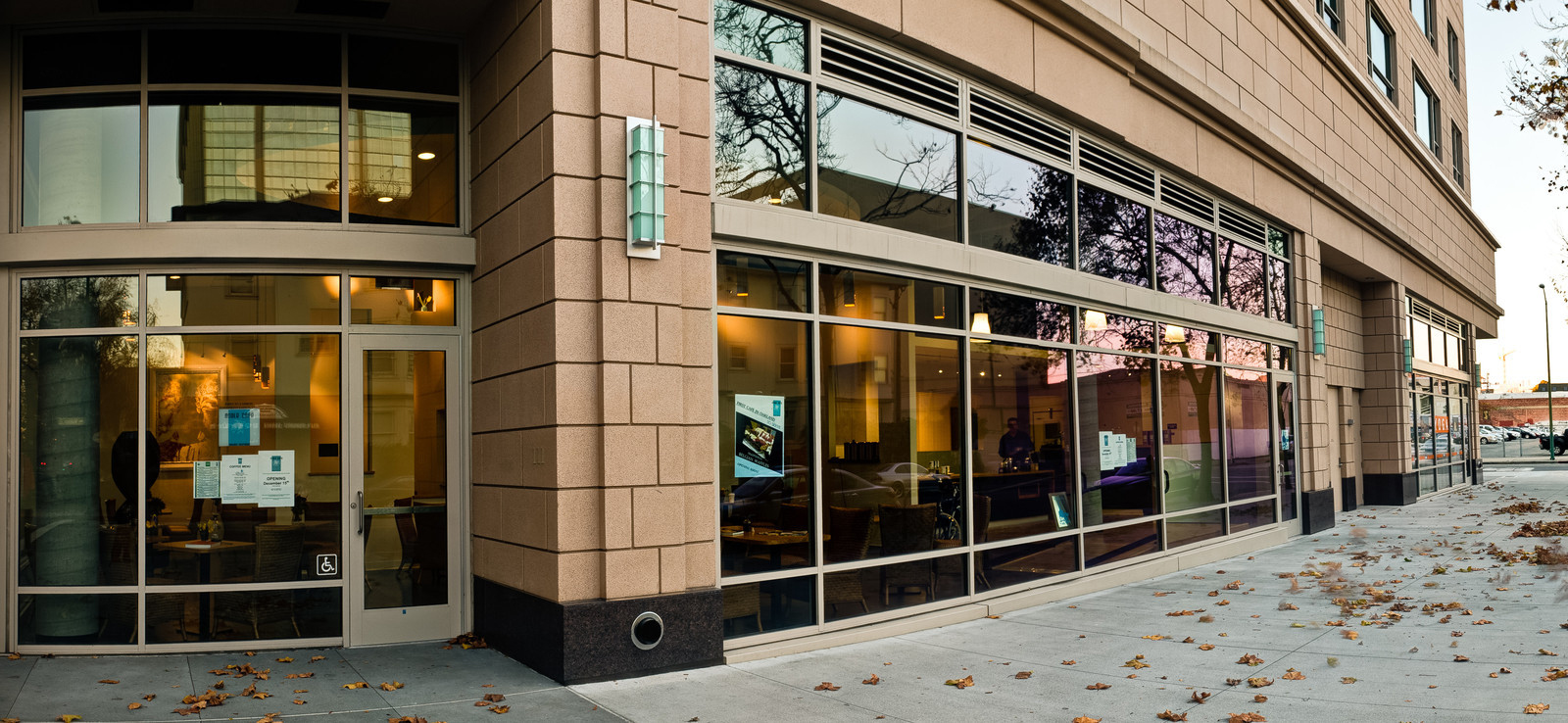 Thompson paid meticulous detail to materials he used to build the cafe on the bottom floor of the One Grand building on Grand Avenue in Uptown. The medium-sized cafe has spacious seating of wicker chairs at wooden tables constructed from reused Monterey cypress, and dangling wooden boxes contain energy efficient light bulbs that cost $70 a pop.