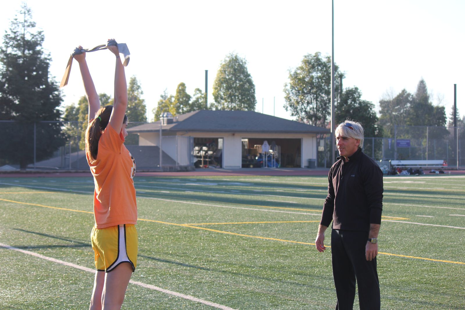 On a sun-drenched field in the center of Piedmont High School’s track, Daniel Kamenetzky stares intently at his trainee’s knees, trying to figure out what she’s doing wrong. “Aha!” he says, snapping his fingers. He then gives some simple, but important instructions on how to position herself so she doesn’t strain her joints while she squats.