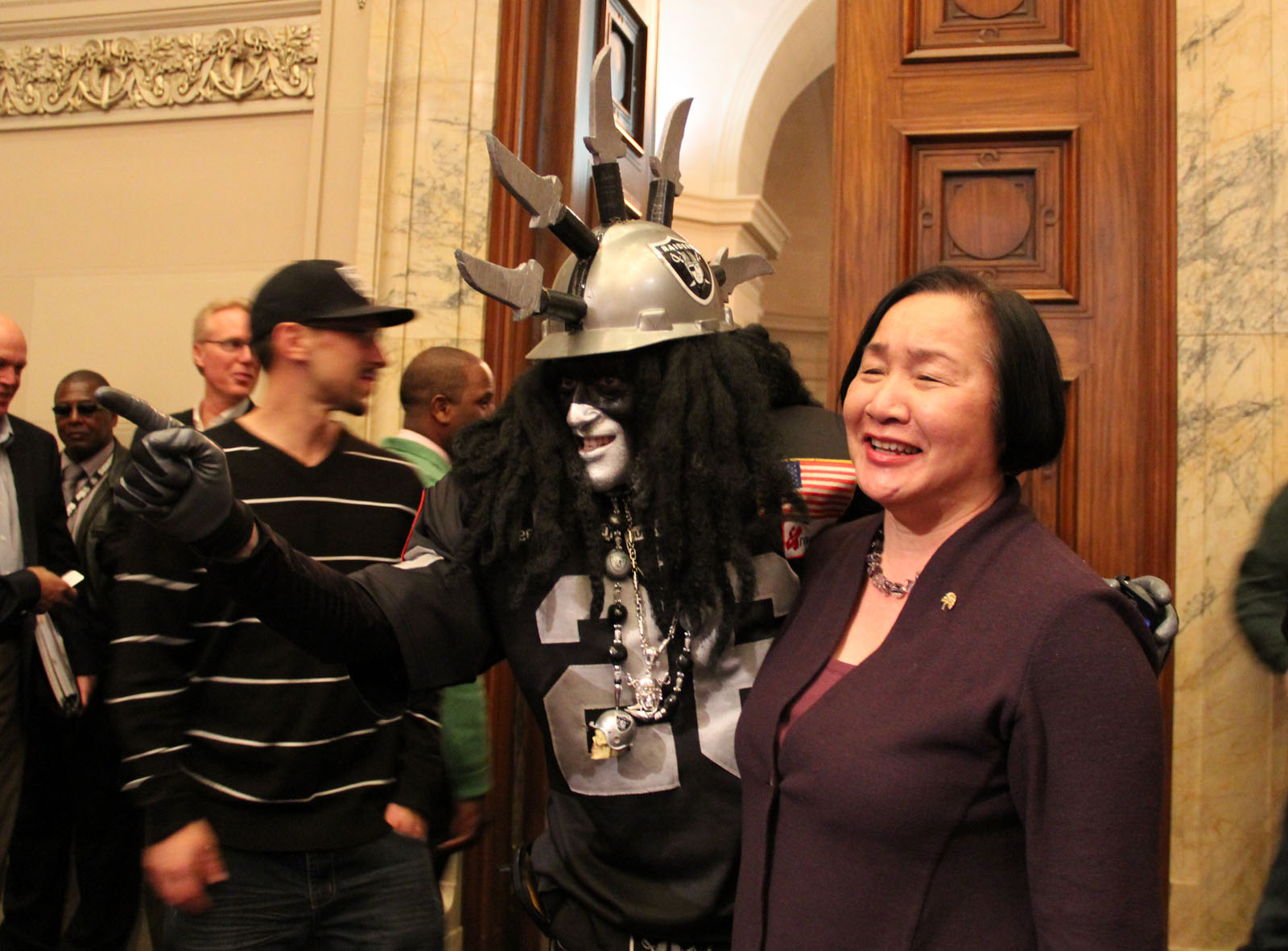 More than twenty fans dressed in team colors came to urge the council to approve the spending plan, indignant that cities like San Francisco and San Jose might take over the Oakland teams. “This is probably the most important thing you guys will ever decide upon,” said Oakland resident Rob Rivera. “Imagine twenty years from now, you have no teams. Businesses don’t want to be a part of that.”