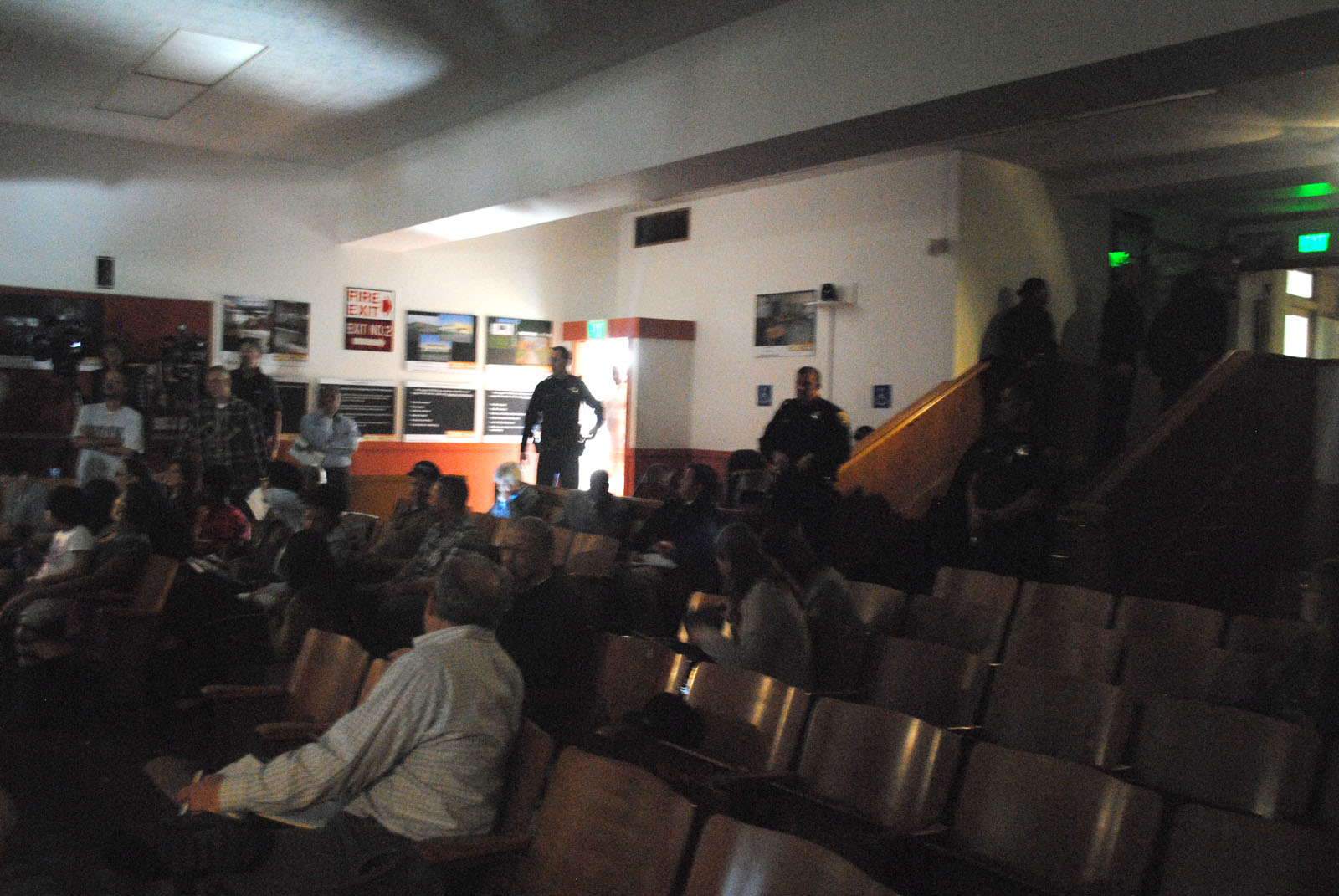 It momentarily appeared the chaos of the previous night had carried over when the power went out in the building about a half hour into the Thursday afternoon meeting, and London chose to proceed with the lights out. Oakland resident Etha Jones was standing at the speakers’ podium, ready to criticize the board for closing schools, when the room went dark. Six police officers moved to line up on the steps near the entrance to the building as the crowd murmured.