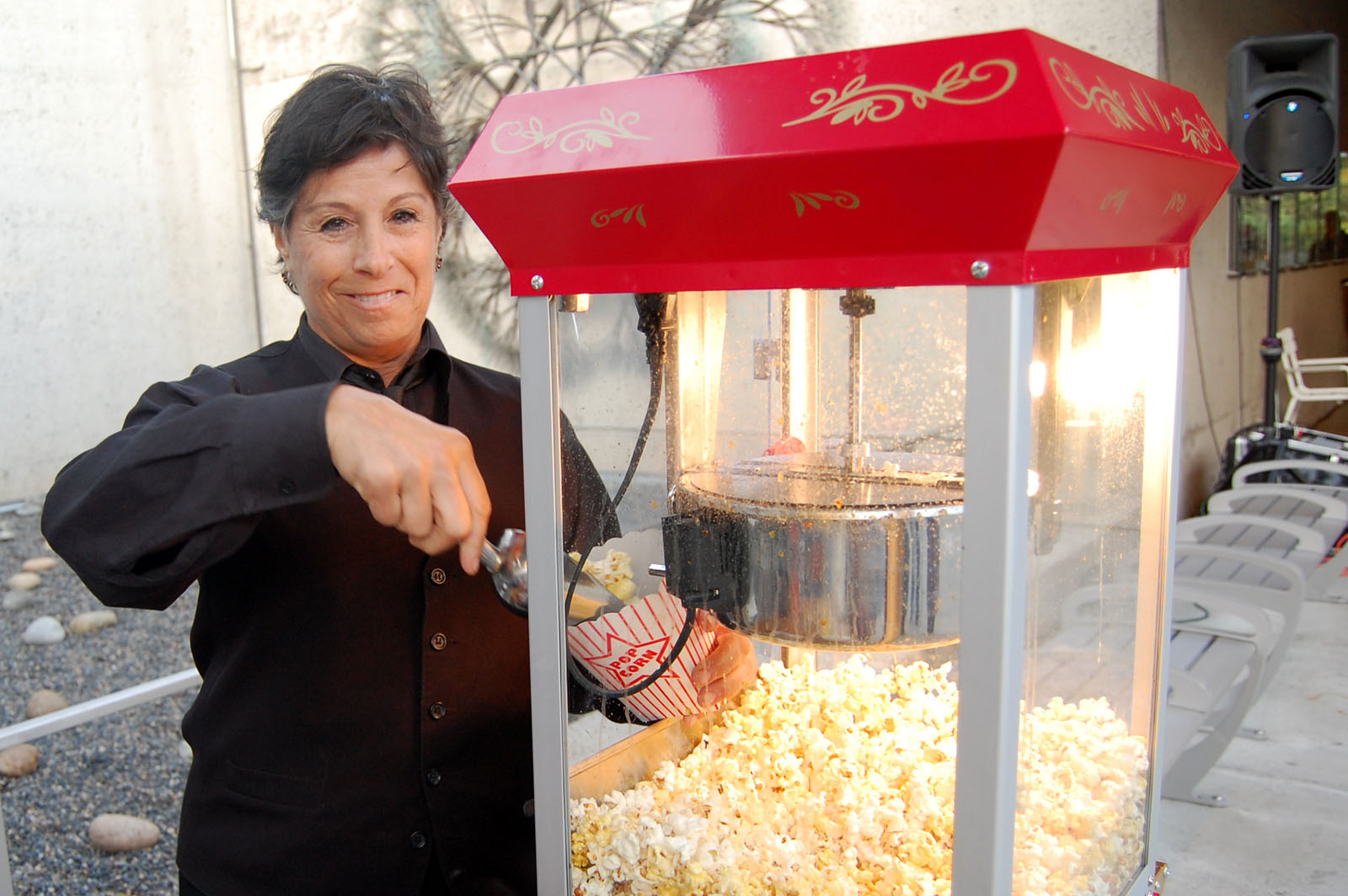 After soaking in the art, visitors can enjoy a glass of wine or a cold beer outside in the plaza, while Amoeba Records DJs spin 1968 hits by the Rolling Stones or The Grateful Dead. Once the sun has set around 8:30 pm, a classic 1968 movie will shown in the plaza and children as well as adults can enjoy free popcorn that is handed out before the movie.