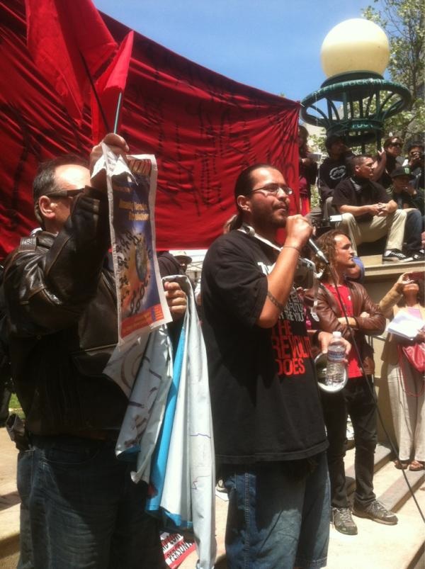 Protesters have been marching throughout downtown this morning as part of a May Day general strike organized by Occupy Oakland activists. This morning, protesters began gathering at three main sites—Frank Ogawa Plaza, Snow Park near Lake Merritt, Child Protective Services at 4th and Broadway—and several marches began after 9 am.
