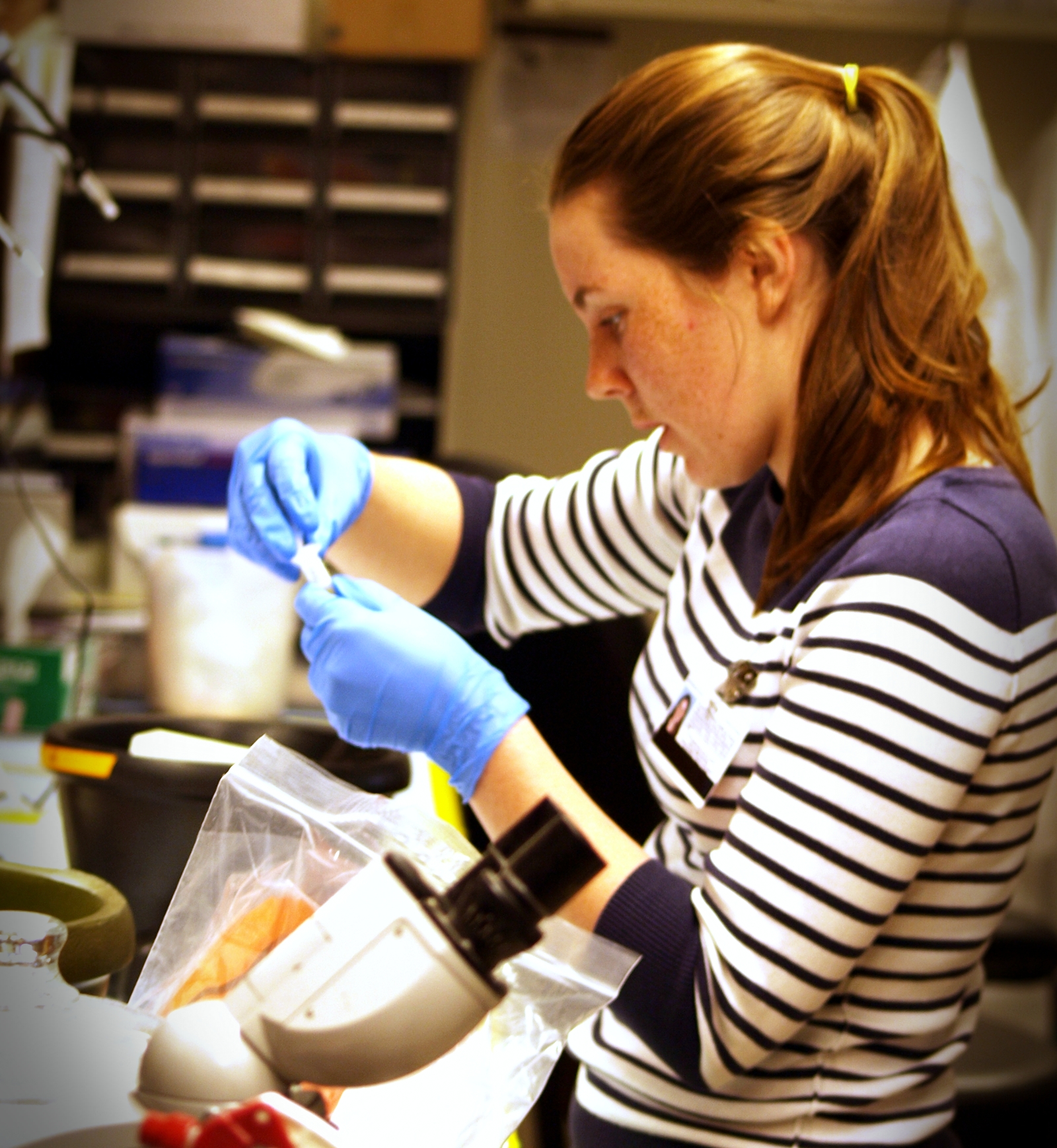 - Biochemistry intern Mary Creedon works in a laboratory at CHORI