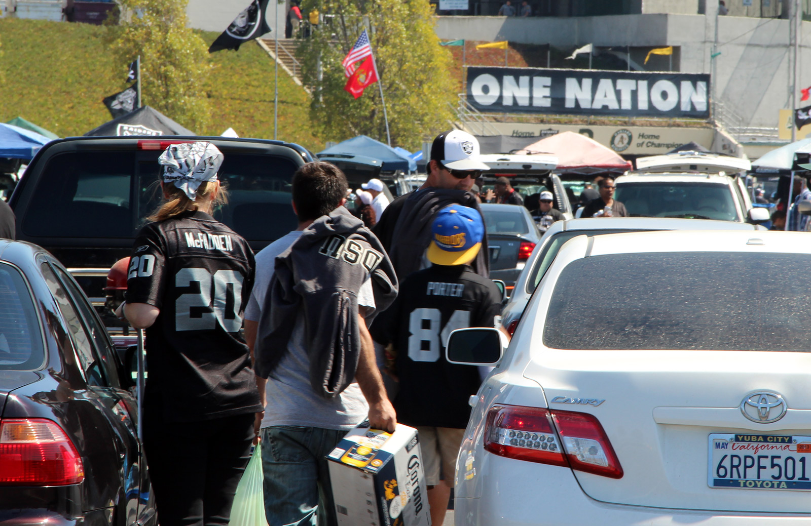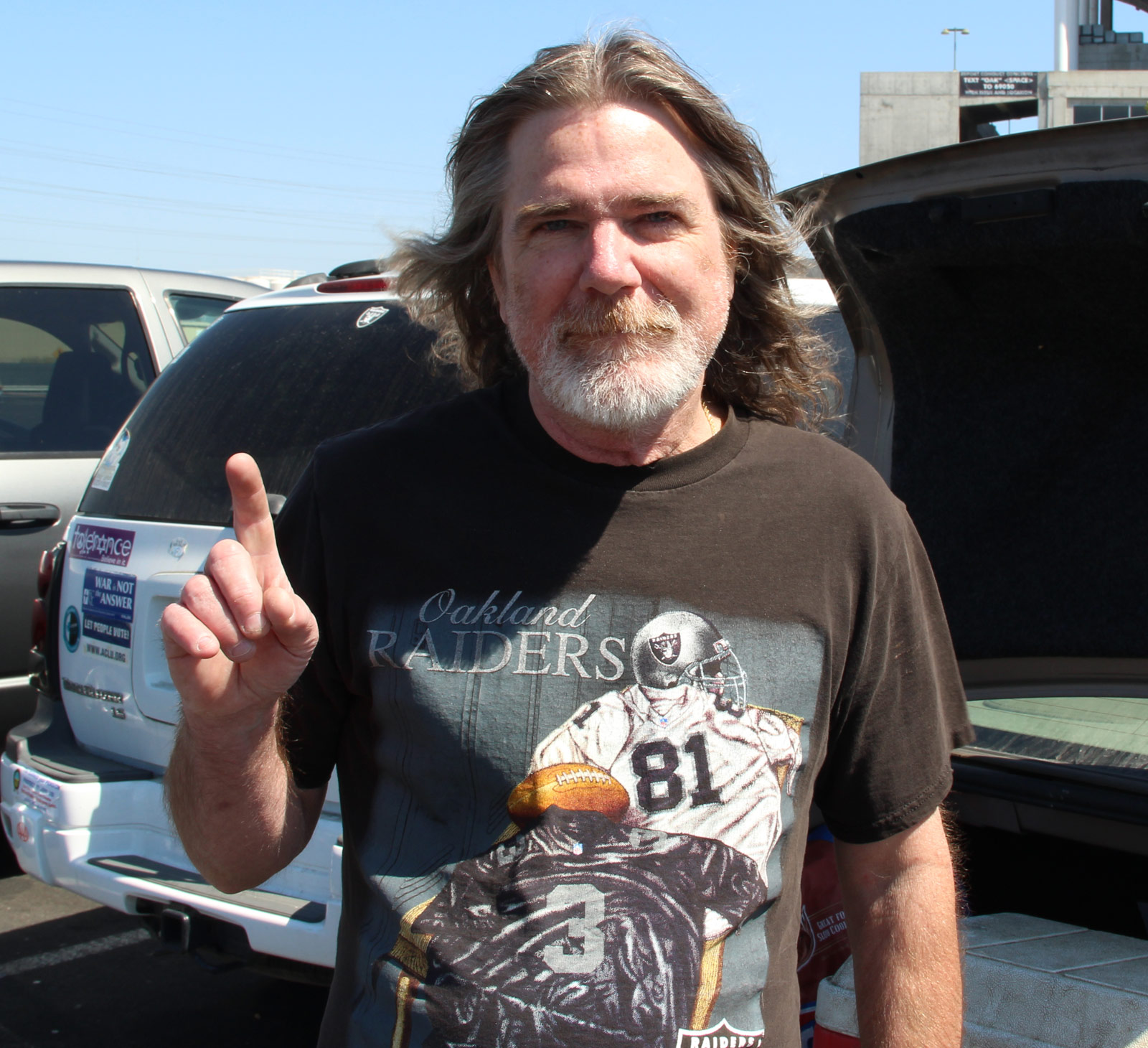 Away from the loud pre-game revelry, in a much quieter section of the parking lot, two older gentlemen sat quietly discussing the team and the new season. 30-year fan and Oakland resident Dale declined to give his last name because he considered his predictions for the new season “the most disloyal thing [he’s] ever said.” At best, “it’s a building block year,” Dale said. “We’d be lucky to be 8-8. I think the team’s worse than last year.”