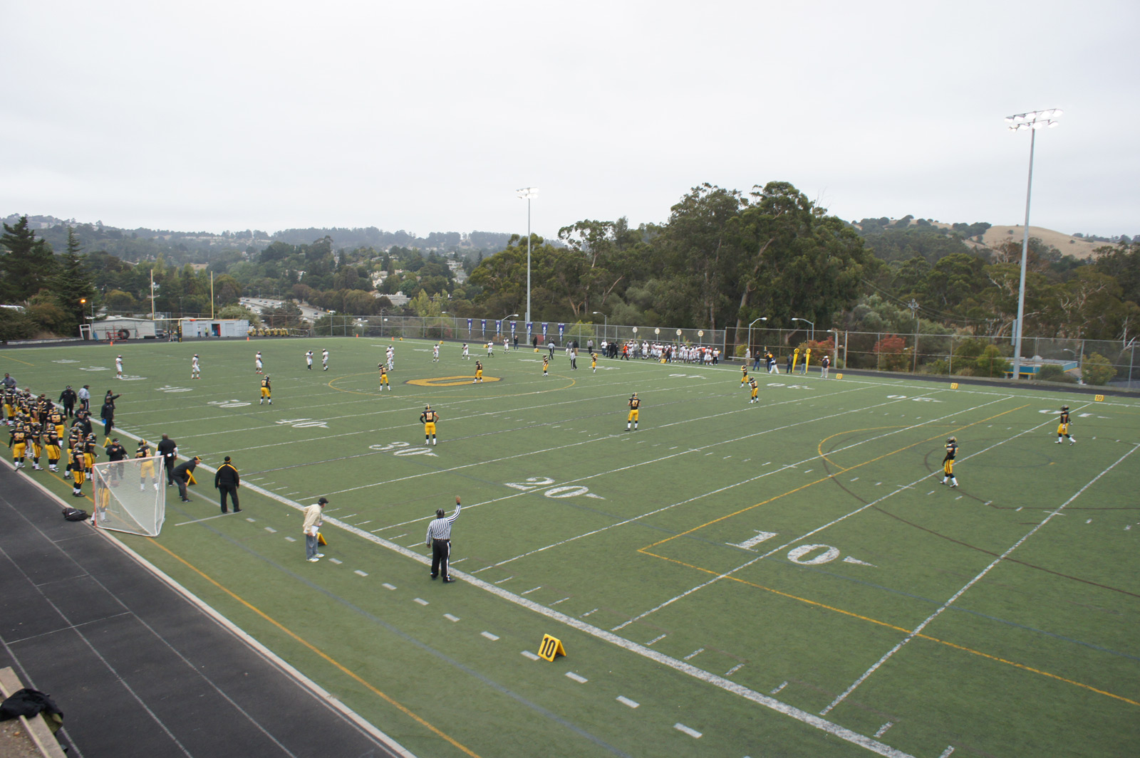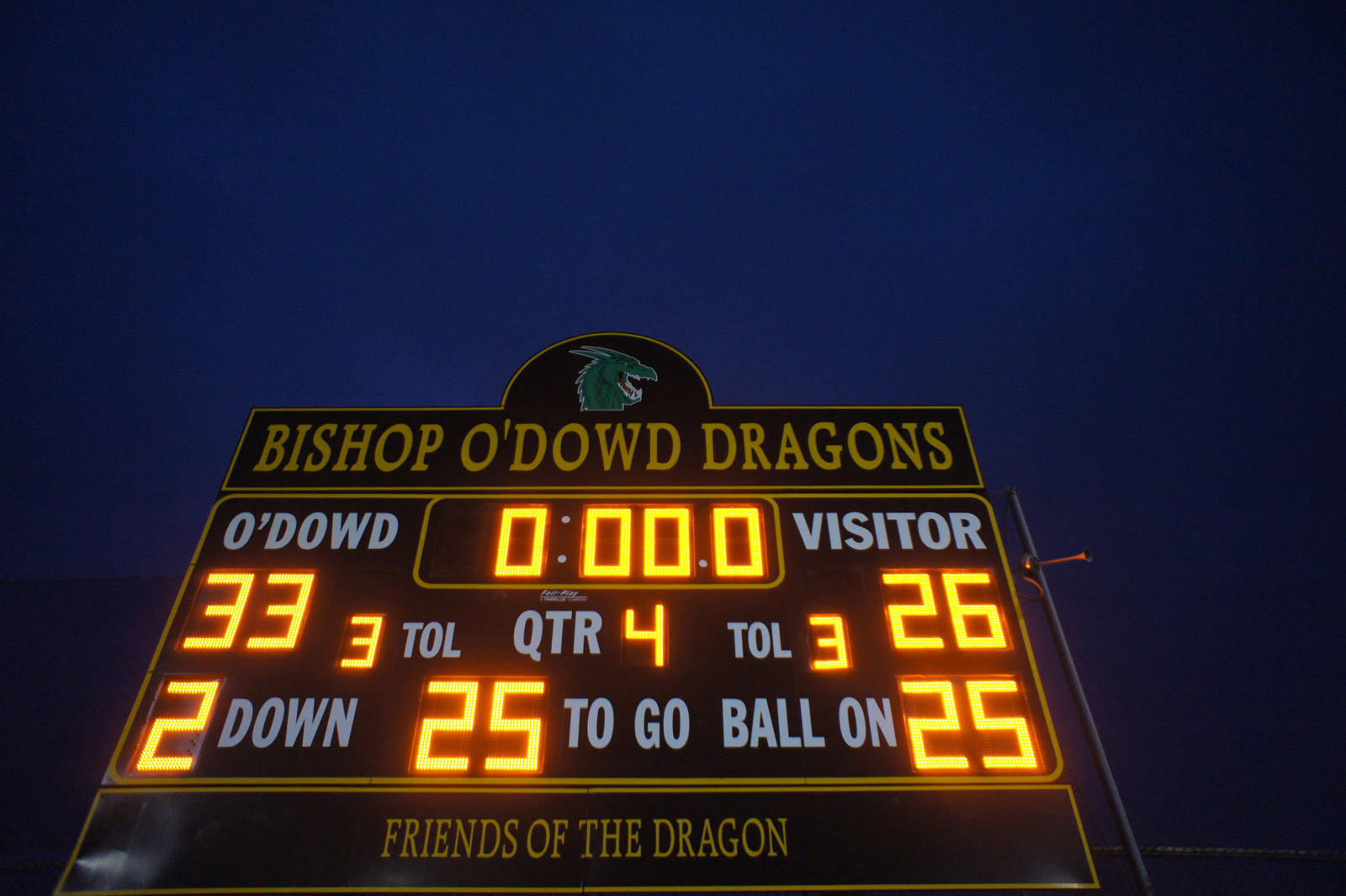 Under the Friday night lights in East Oakland, The McClymonds Warriors’ football team fell to the Bishop O’Dowd Dragons, with a final score of 33-26.