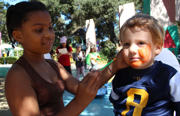 - Sasha Miller, 9, paints the face of Mitchell Pamp, 2 1/2 years. Photo by Debora Silva.