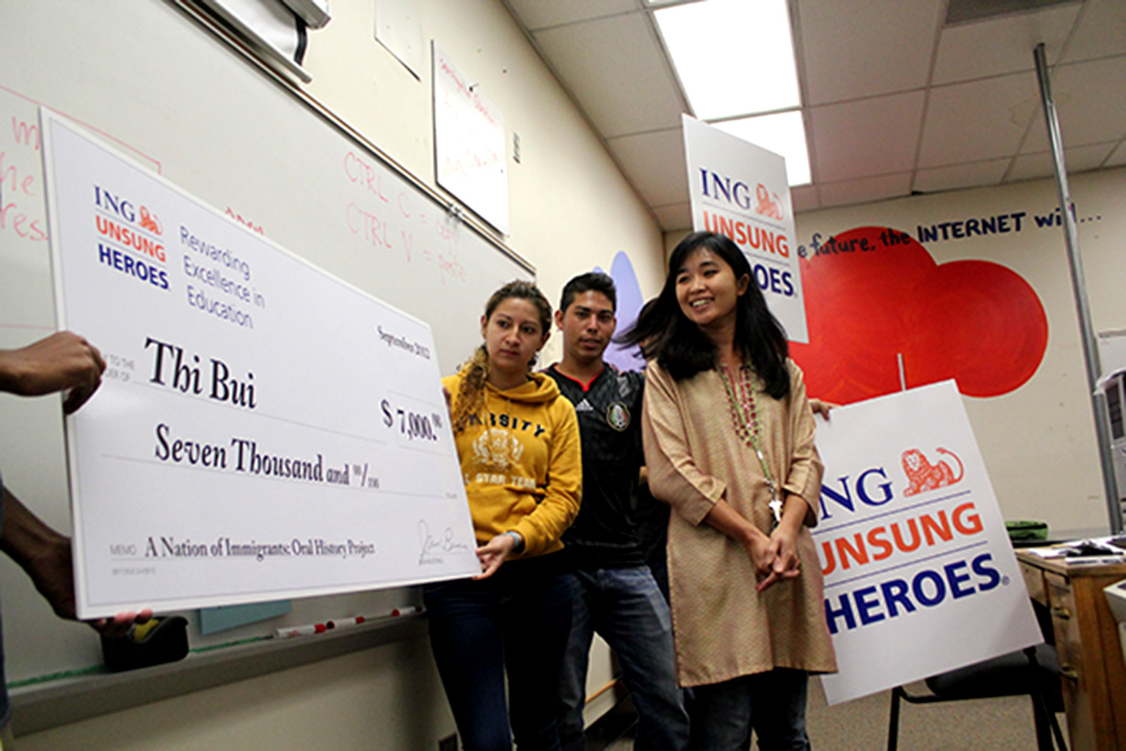 - Oakland International High School teacher Thi Bui, right, was awarded $7,000 by the ING Unsung Heroes program.