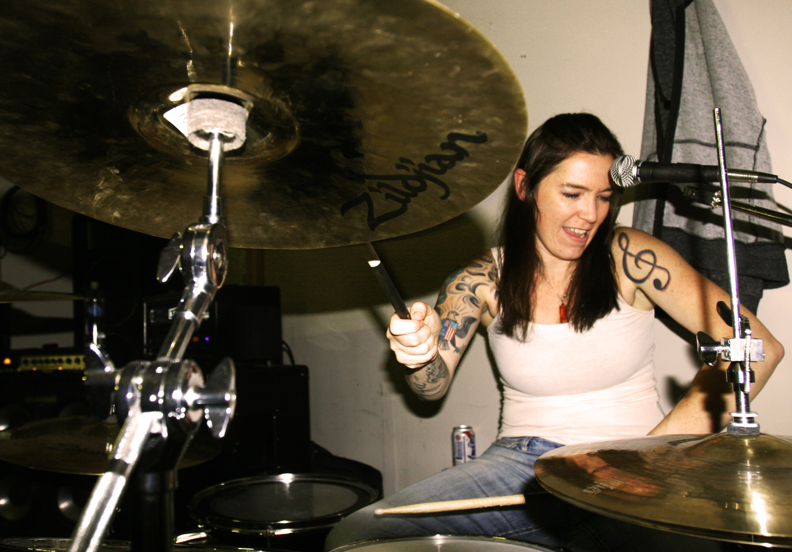- Mongelli on the drums, performing with Angels of Vice.