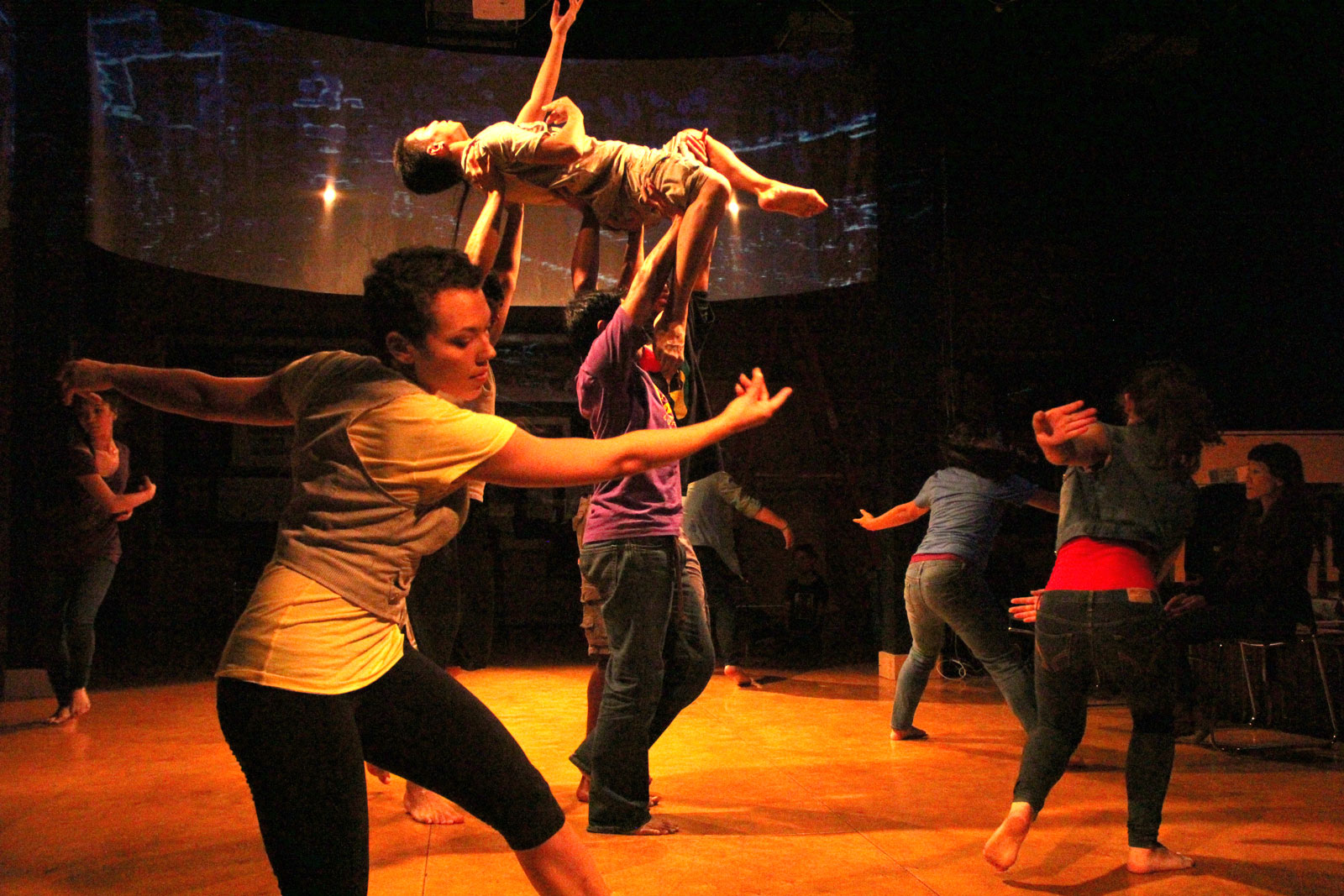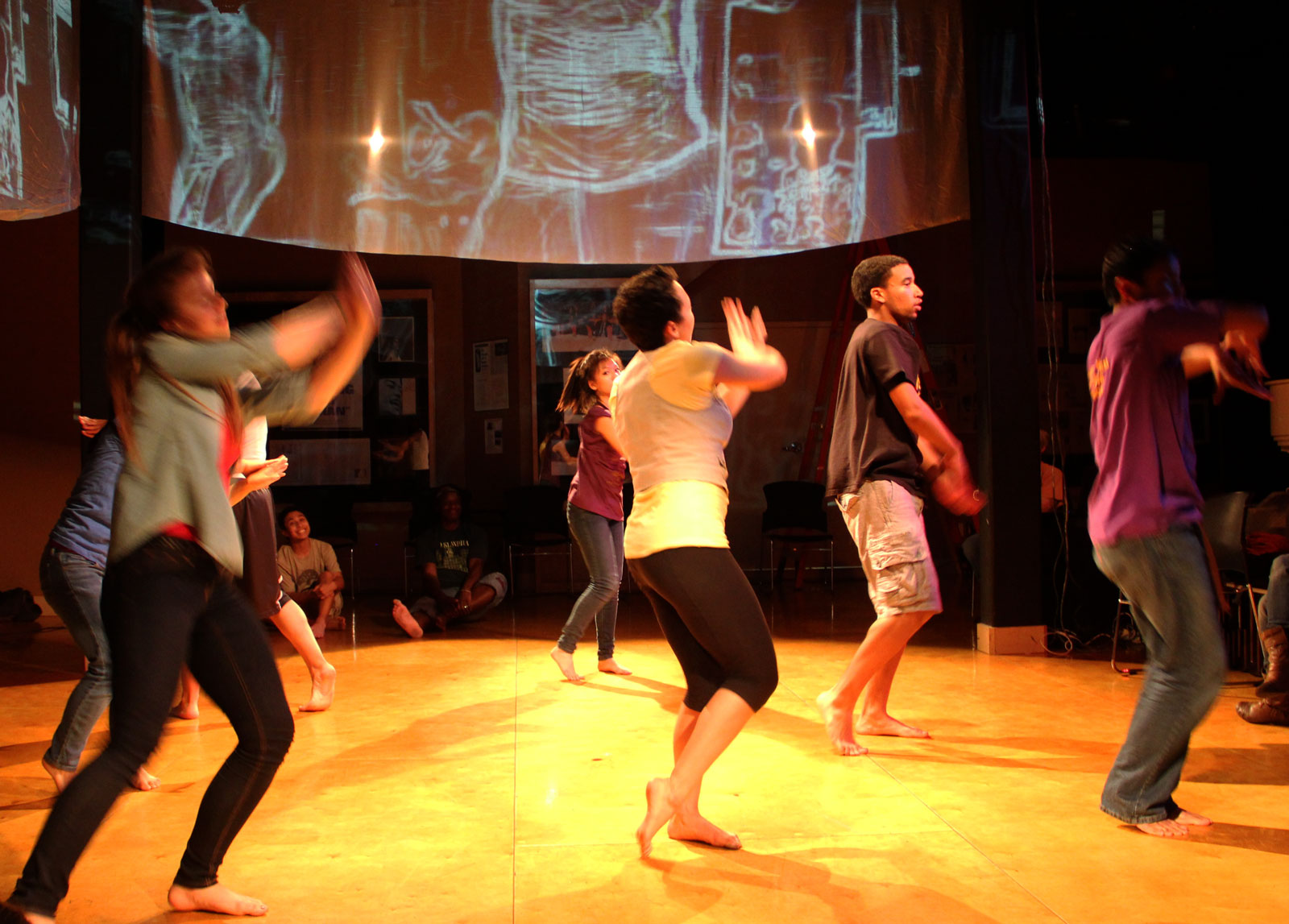 Freedom House is a marriage of modern dance, voice recordings, video projection and original musical compositions—with Oakland as its subject. “I pick out the things that really speak to me, and I take it into the studio and I play it for my dancers,” Naganuma said, describing the interviews that provide narration throughout the piece, and their relationship to the choreography. “We come up with a movement vocabulary together, and I create a dance out of it.”