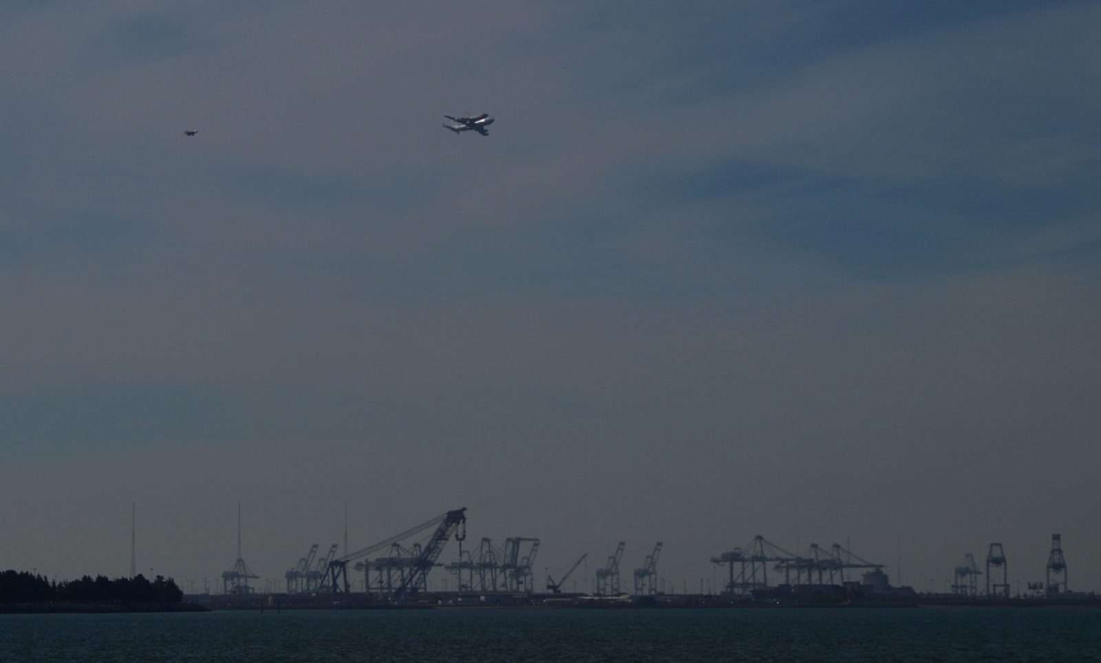 - Endeavour flies over the port of Oakland. Photo courtesy of Tawanda Kanhema.