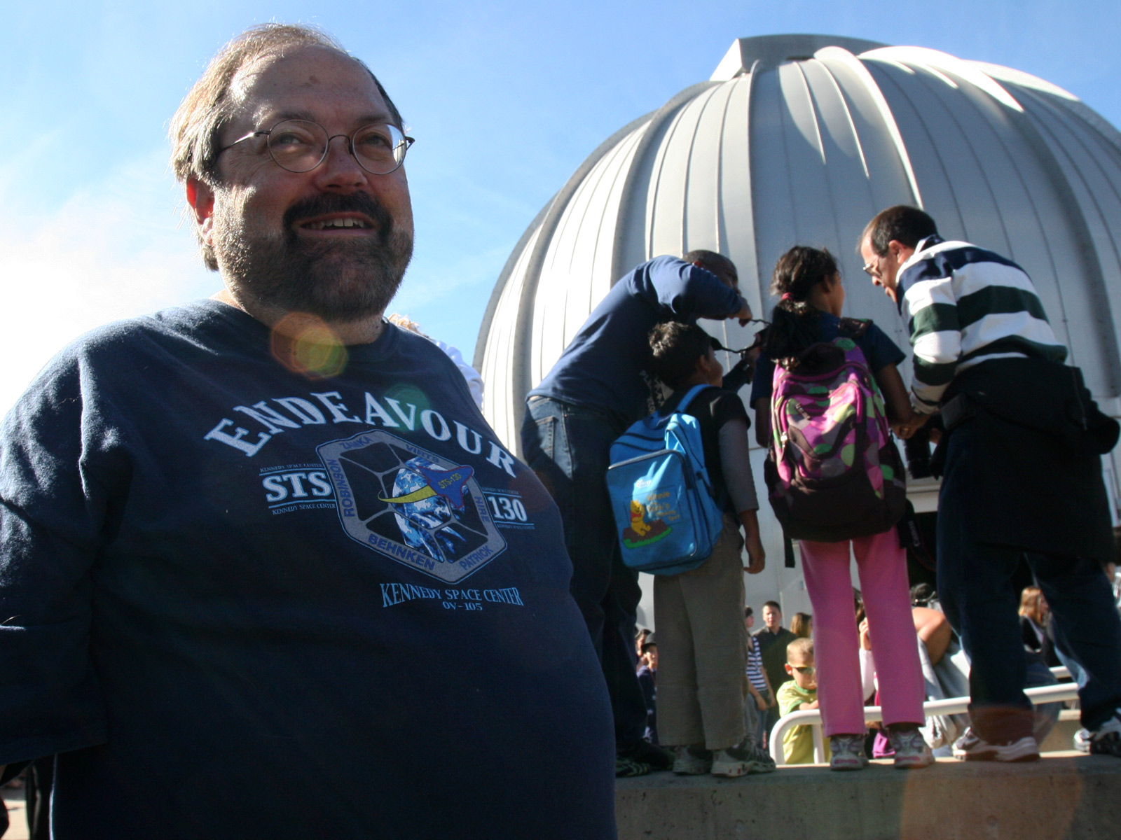- Local NASA enthusiast Keith Irwin sports his Endeavour tee shirt.