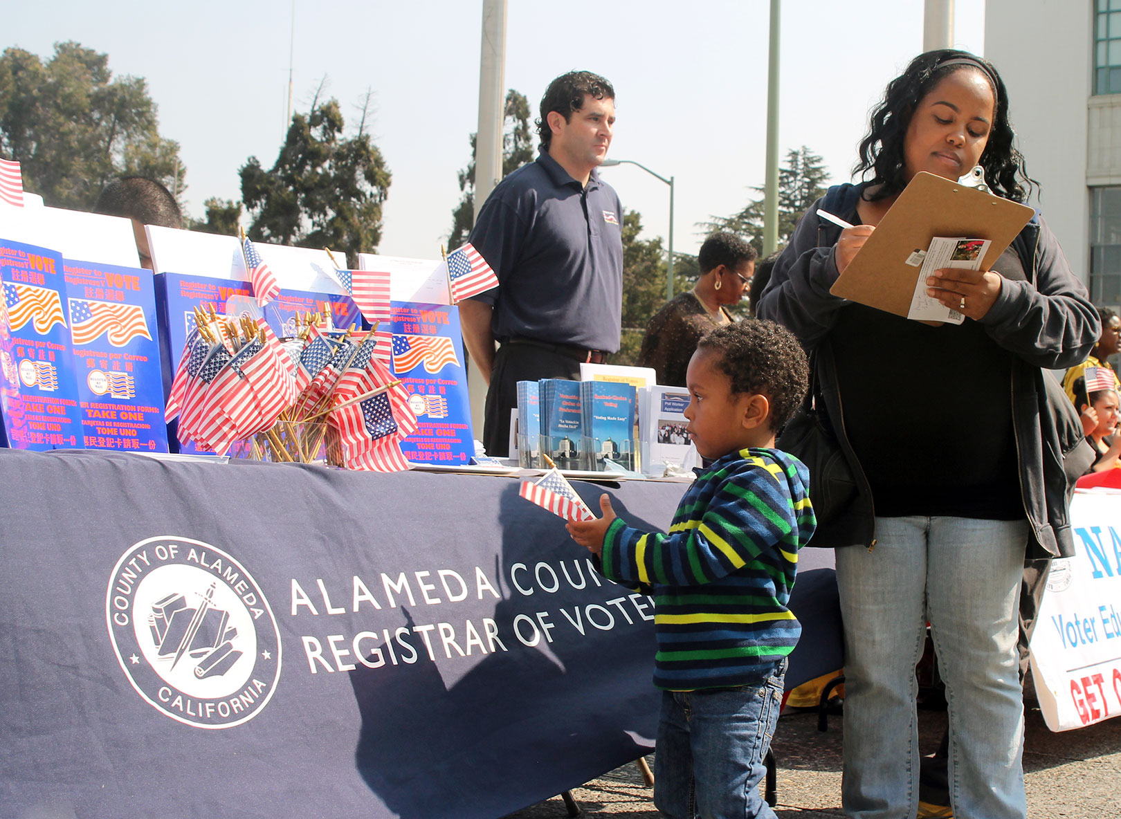 “She never told me anything about it,” Flores said, as he leaned over the voter’s registration table at a special Tuesday public signup in front of the Alameda County Administration Building in Oakland. But now that he has a job working with children, Flores said, he believes he should set the example for his young students.