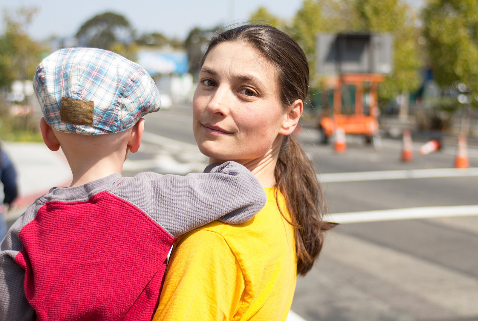 - Clarence Berger-Greer carries her son Theodore “Teddy” on the walk to Kaiser Oakland’s Serenity Garden.