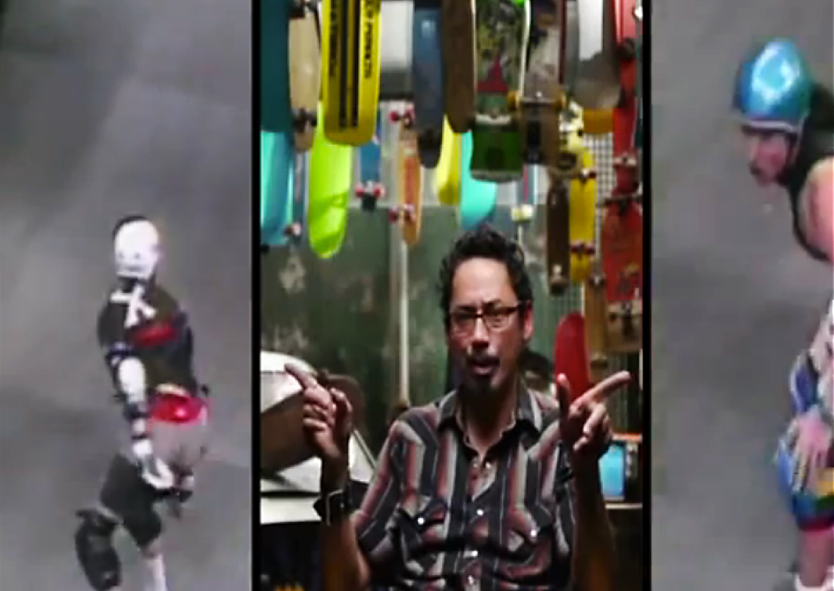 - Tommy Guerrero, center, describes the differences between pro skaters Tony Hawk’s and Christian Hosoi’s skate styles in a still from “Bones Brigade,” one of the films screening at the Oakland Underground Film Festival this weekend.