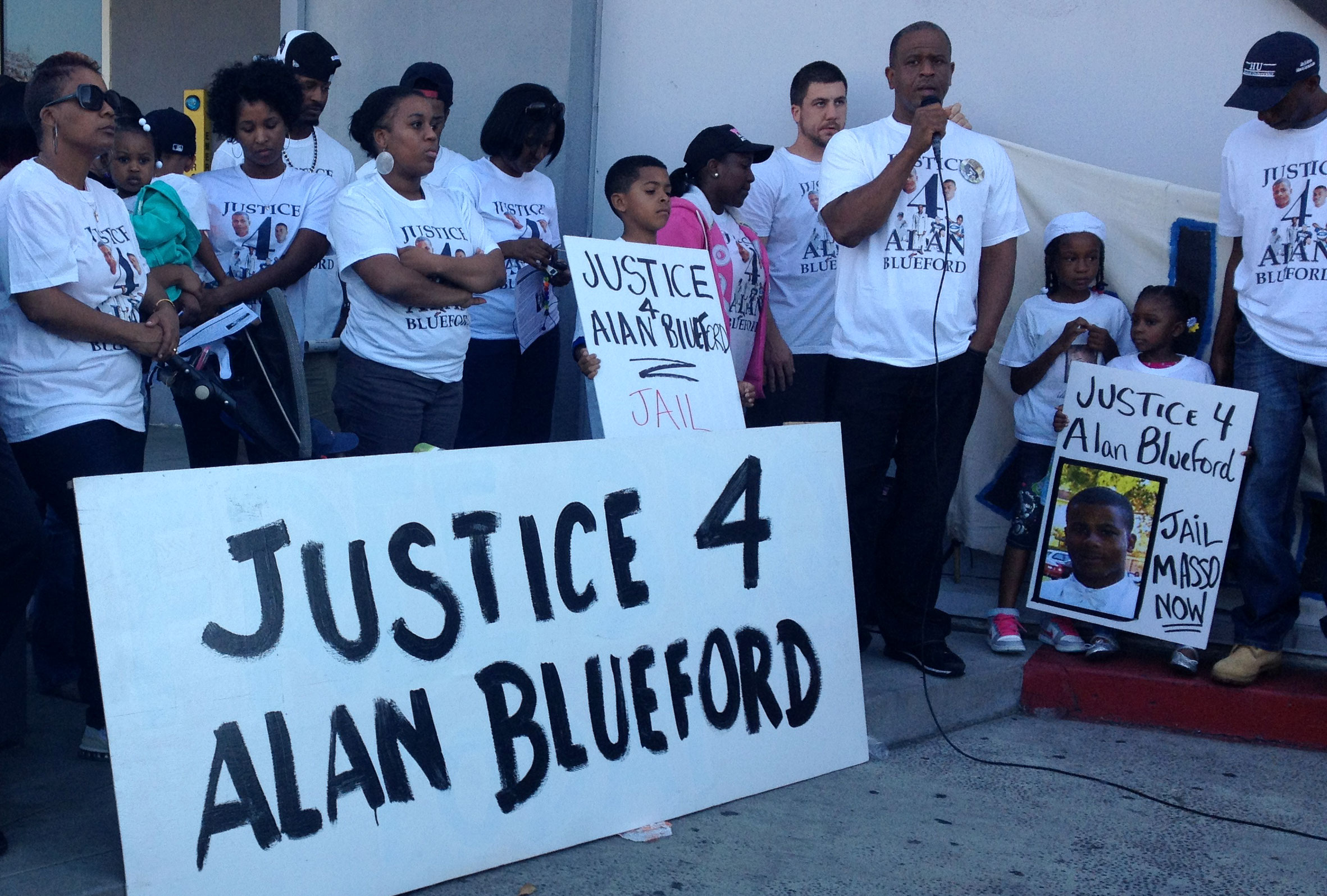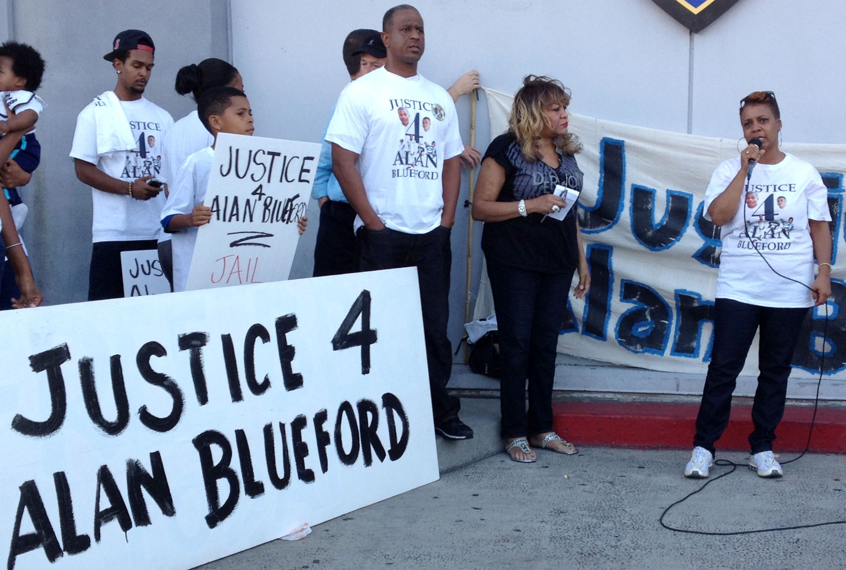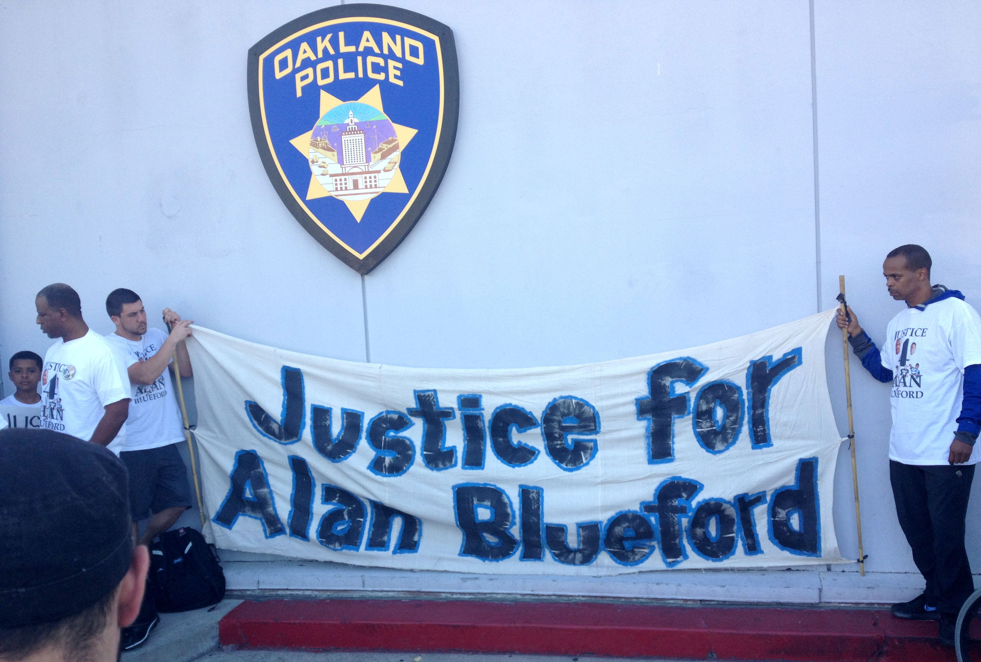 - Whistles and chants of “Justice for Alan” filled the air outside of the Eastmont substation as Blueford family members and others spoke about their treatment by the Oakland Police Department and the Oakland City Council.