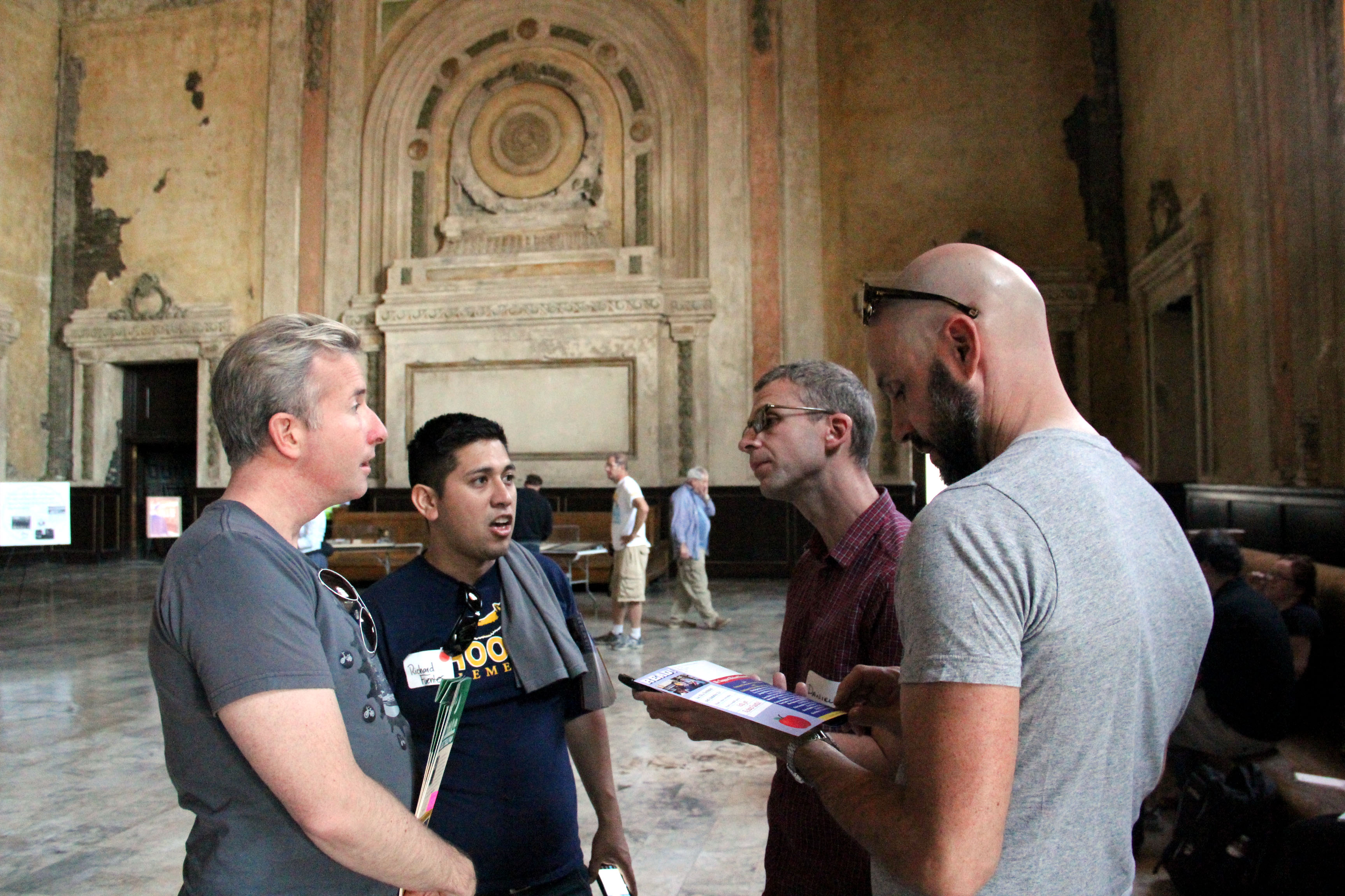 “It’s an intriguing location for lots of people,” he said, explaining that the building is well known in local photography circles. Rosa seemed disappointed by the enthusiastic turnout—there were too many people in the space to capture a good image. Despite the crowds, he was glad for an opportunity to get inside, he said, because he has wanted to photograph the station for some time. “I’m glad they’ve opened it up,” he said. “I’ve thought about coming and breaking in.”