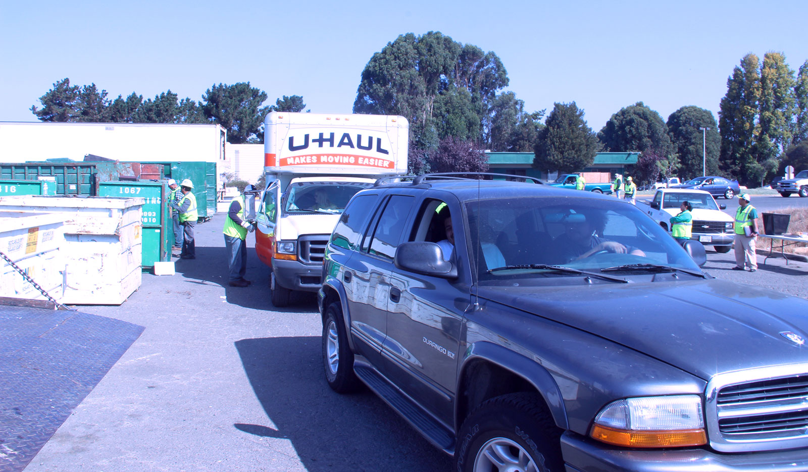 Some people were confused by what items were accepted at the drop-off. East Oakland residents Don Mackay and his friend Mike, for instance, arrived at the lot in a rented U-Haul truck that they had filled with old carpeting and un-upholstered furniture. “We’re not garbage or recycling pros,” Mackay said, “so when they said bulky items, we thought it was free garbage day.” Mackay said they would store the items that they didn’t drop off at home.
