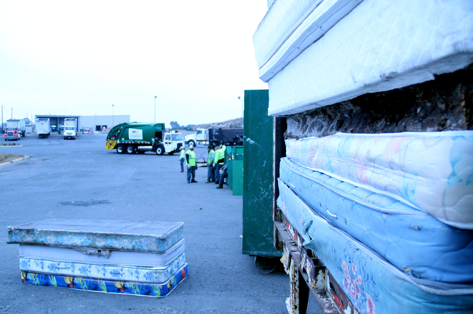 - Waste Management workers haul mattresses dropped off by Oakland residents at the Bulky-Item Drop Off event in San Leandro.