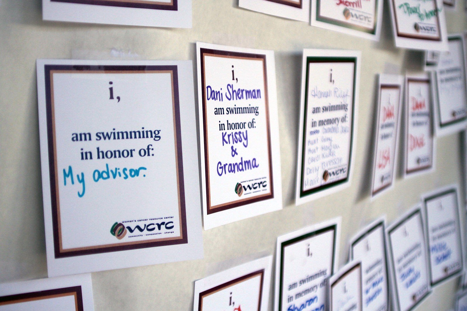 - Swim a Mile participants fill out cards to let the crowd know who they are honoring while they swim. For many, these names bring more meaning to the event.