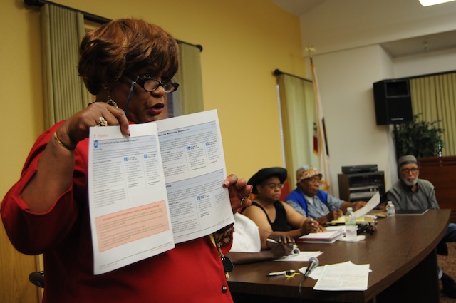 The Alameda County’s Registrar of Voters is also increasing outreach by giving talks at community groups and sending out explainers in the mail. On a recent afternoon, a group of about 20 elderly people gathered to discuss issues important to their senior living community—the Allen Temple Arms Retirement Community in East Oakland. Shelley Burton, the retirement community’s service coordinator, had requested a presentation from the Registrar of Voters to explain how ranked-choice voting works.
