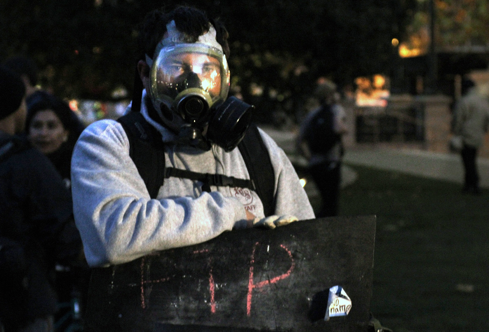 - Others brought their own gas masks. Photo by Charles Berkowitz.