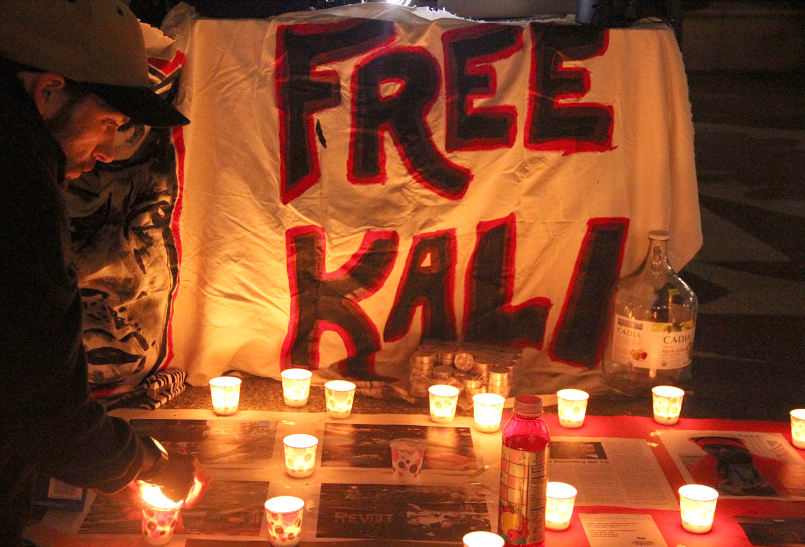 - A shrine erected for Marcel “Kali” Johnson, a man arrested last year at Occupy. Photo by Steve Fisher.